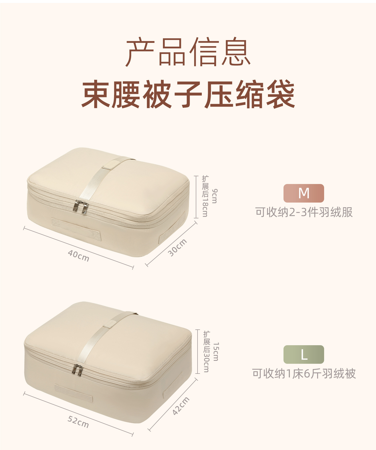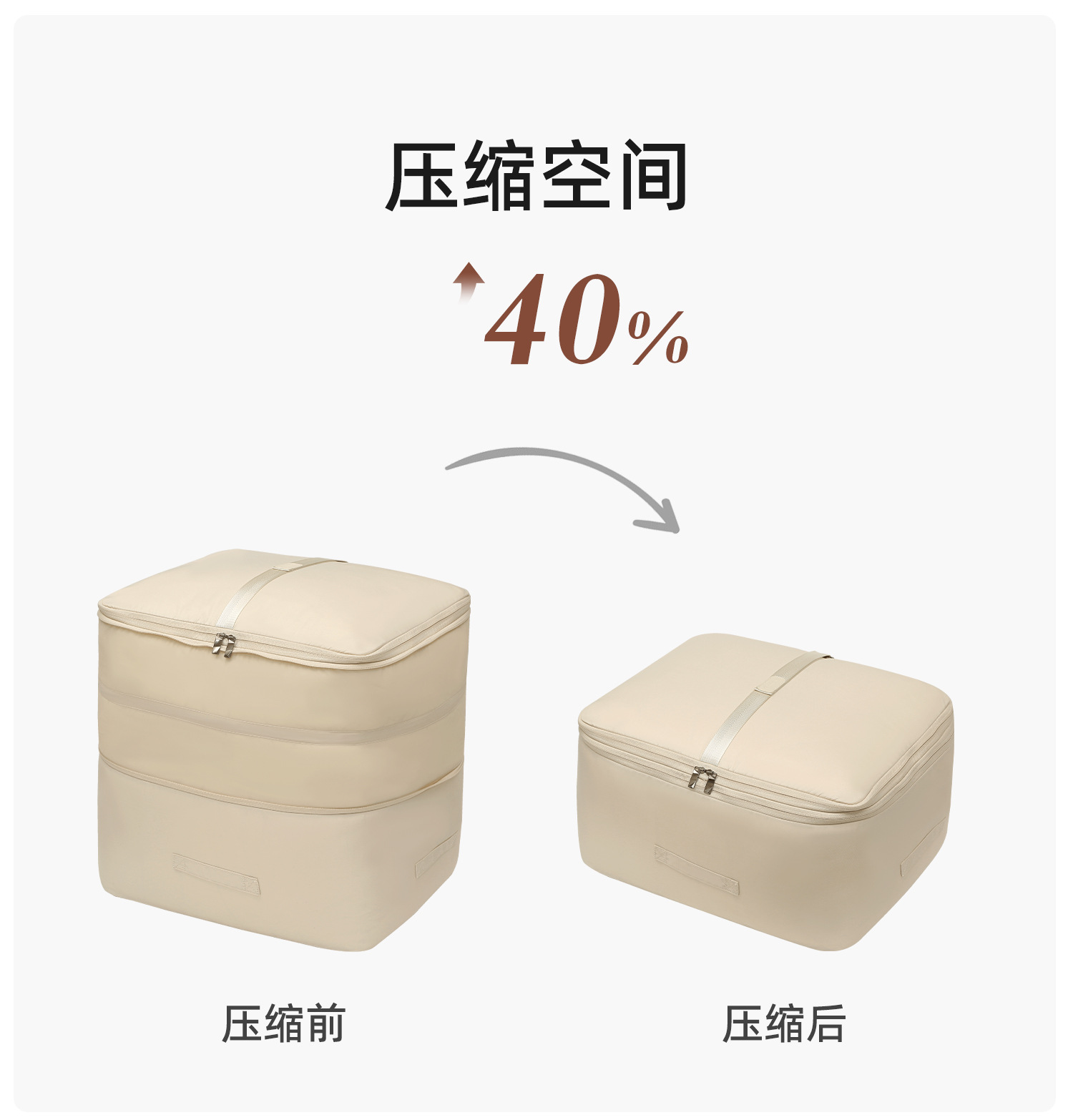 安琴棉被收纳袋米色圆筒可压缩省空间可视窗加厚柔美尼被子整理袋