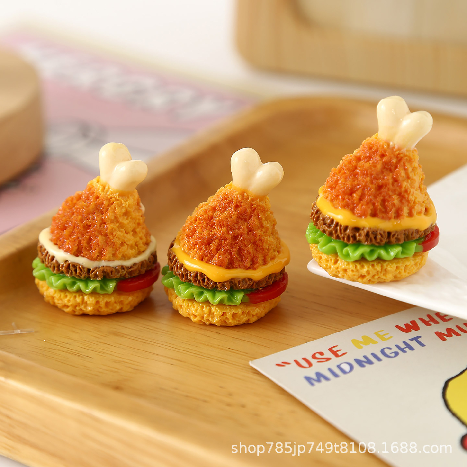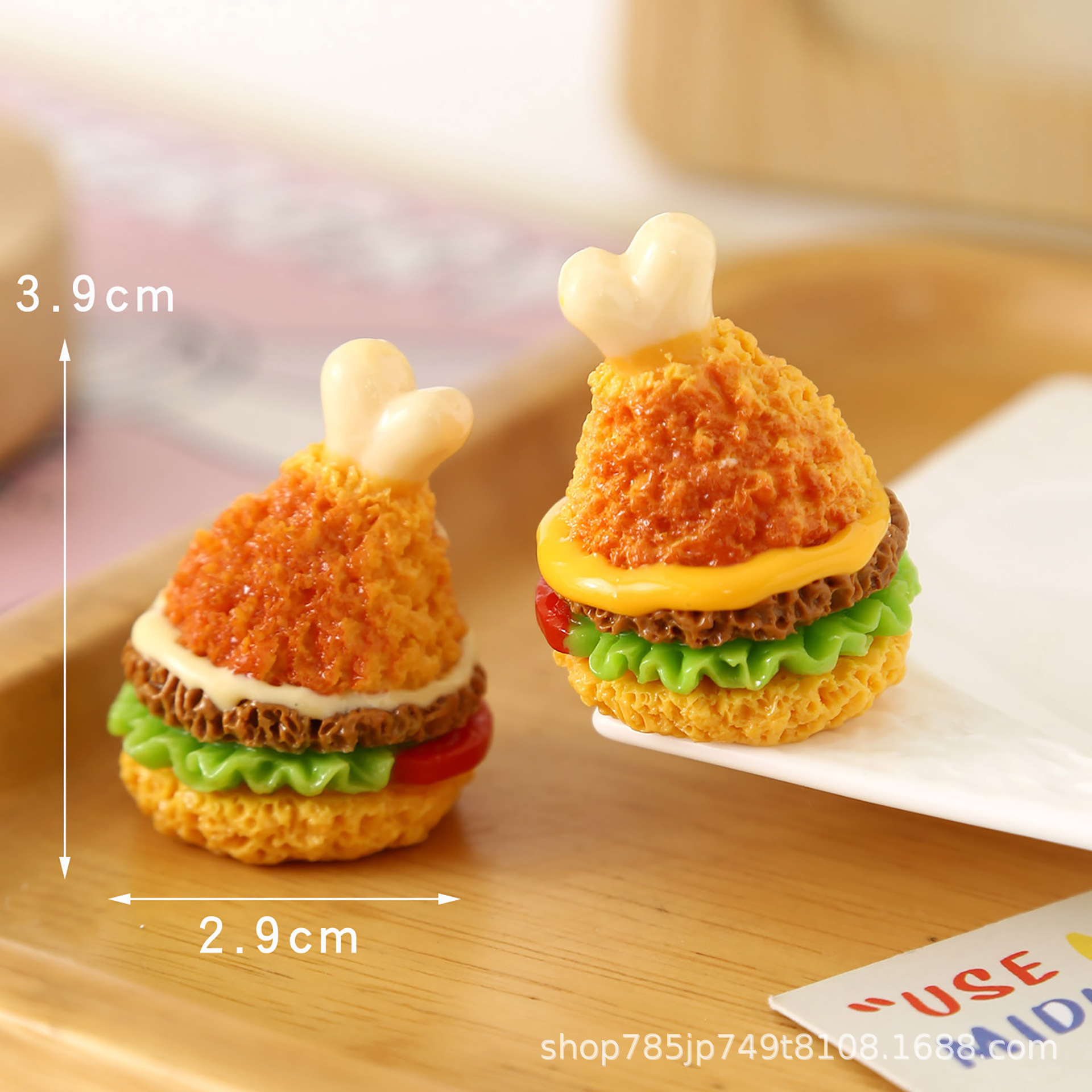 仿真蛋糕汉堡食玩配件 DIY材料批发鸡腿汉堡小摆件食玩树脂钥匙扣