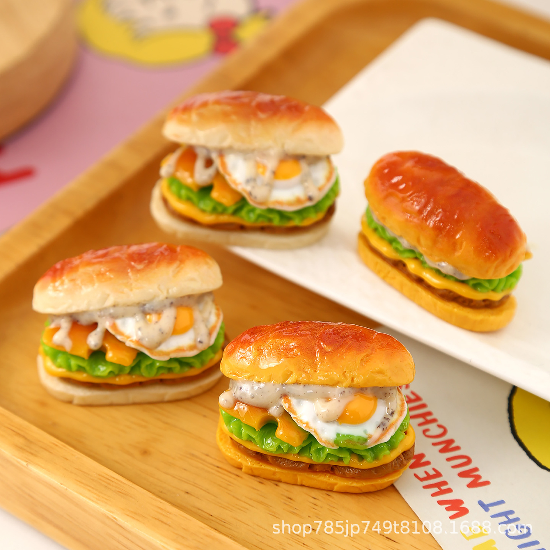仿真微缩食玩奶酪蛋汉堡DIY树脂配件手工钥匙扣冰箱贴场景小摆件