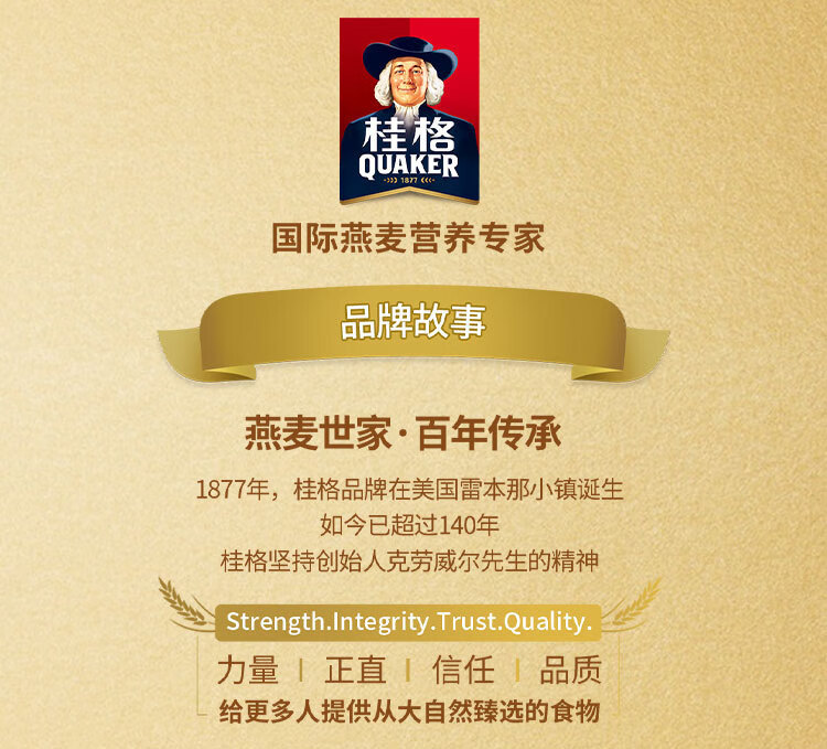 桂格インスタント食品純オートミールインスタント飲料1000g * 2缶原味0ショ糖栄養朝食純麦インスタント