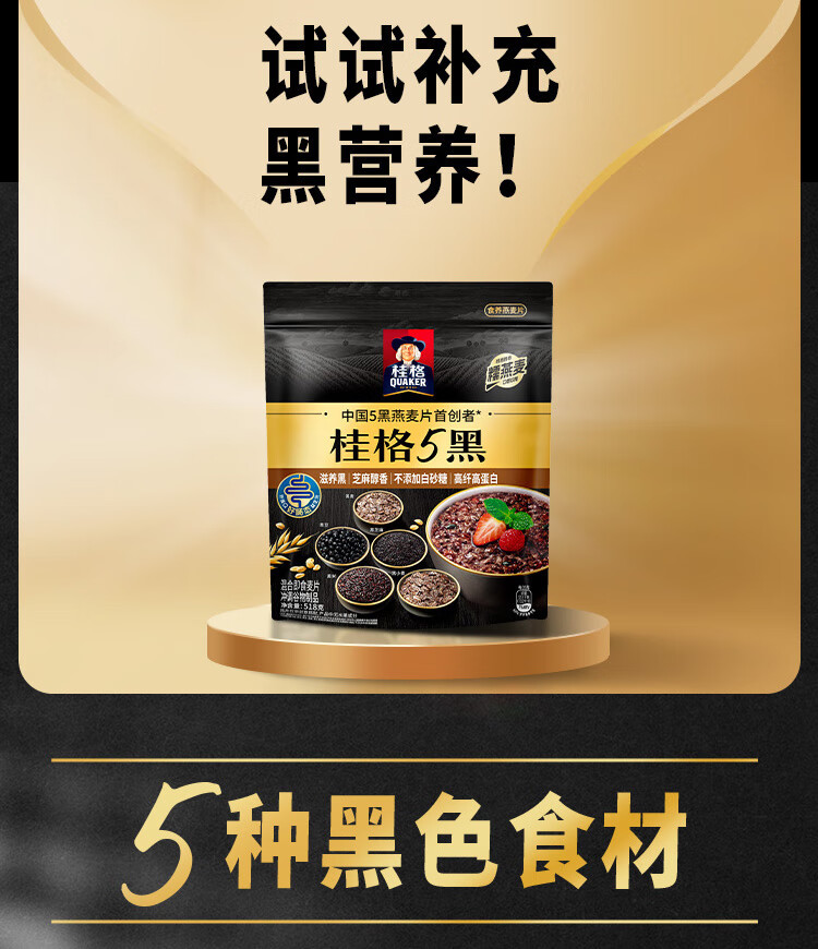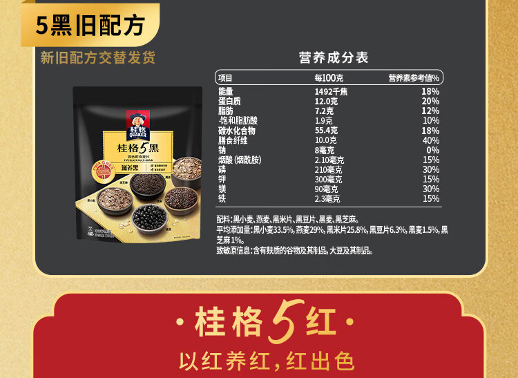 桂格5黑5红5白混合即食五黑麦片860克罐装代餐早餐速食冲饮