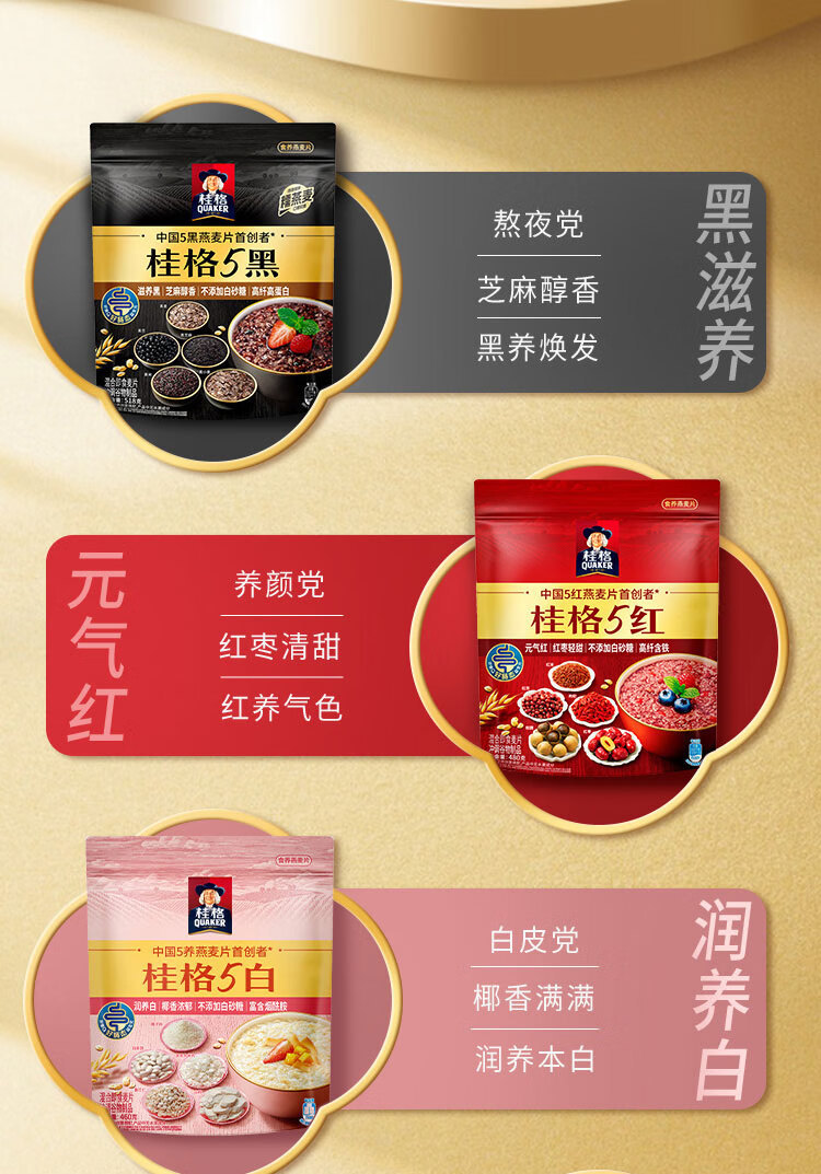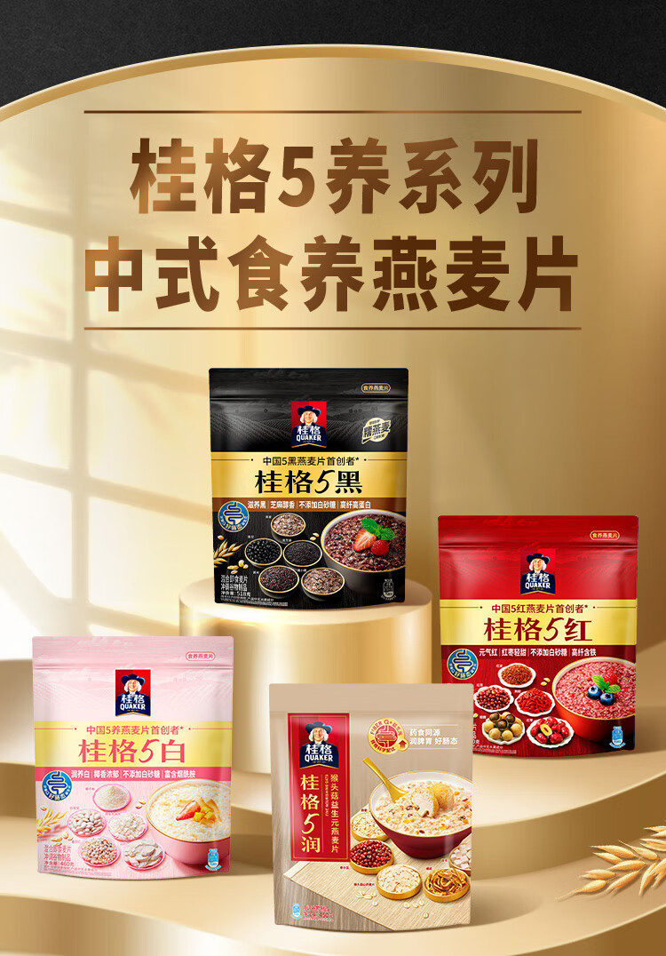 包装规格 桂格5黑860g罐装,桂格5红860g罐装,桂格5白860g罐装,桂格5润猴头菇860g罐装,桂格蒸糯860g罐装