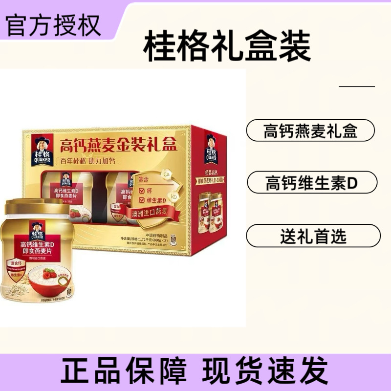 桂格高钙维生素D即食燕麦片礼盒装营养早餐年货送礼860g*2罐