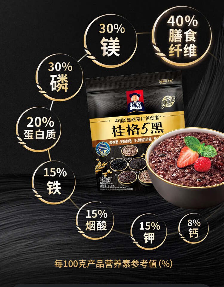 桂格5黒混合インスタントシリアル518g袋詰め栄養健康養生朝食怠け者代食インスタント食品