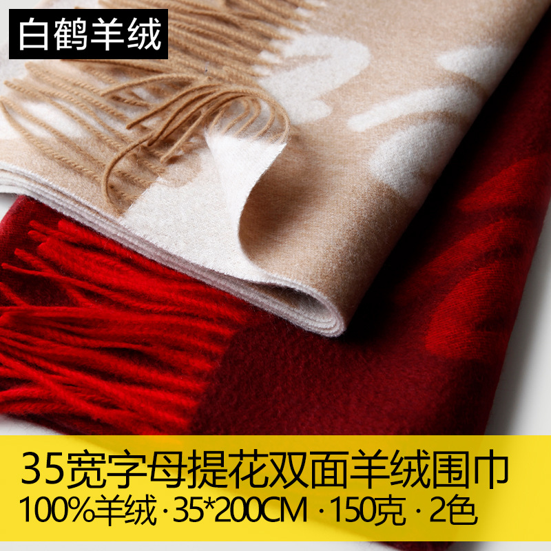 字母双面提花羊绒围巾流苏秋冬季加厚保暖女士女款cashmere内蒙古