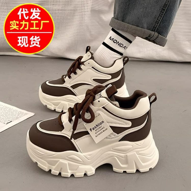 外国貿易ホットモデル 2025 春と秋の新作多用途白本革インナー高さスポーツシューズ厚底カジュアルお父さん靴