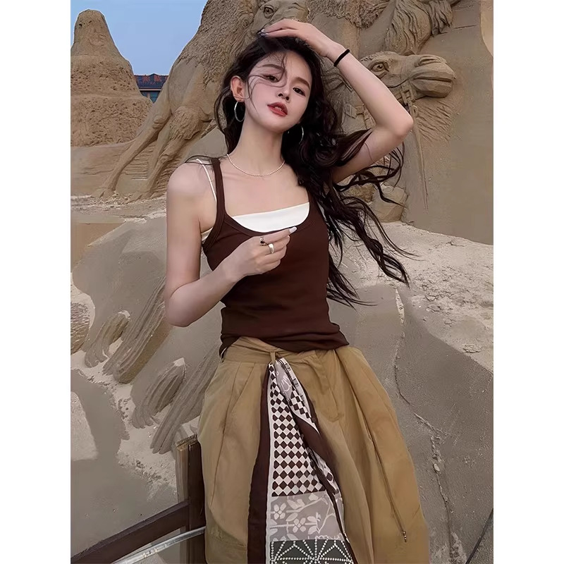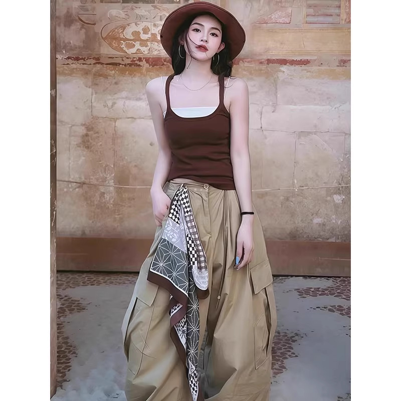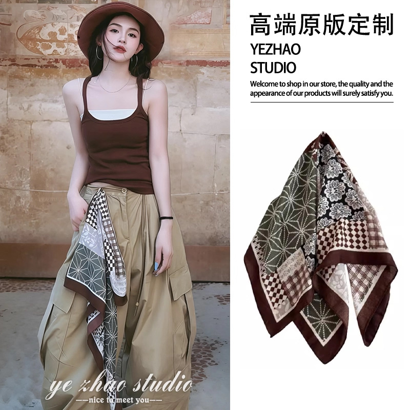 美拉德风复古棕色丝巾头巾女秋冬新款辣妹甜酷发巾腰带方巾配饰