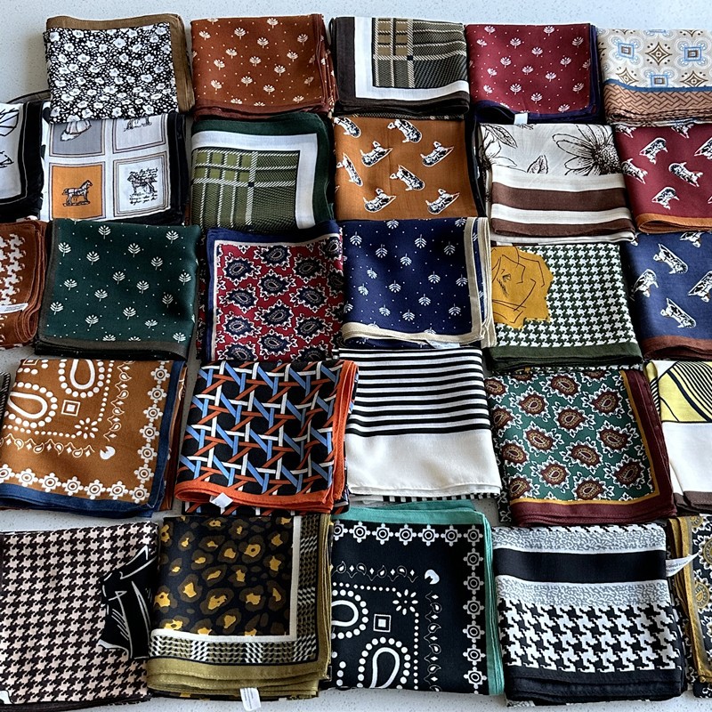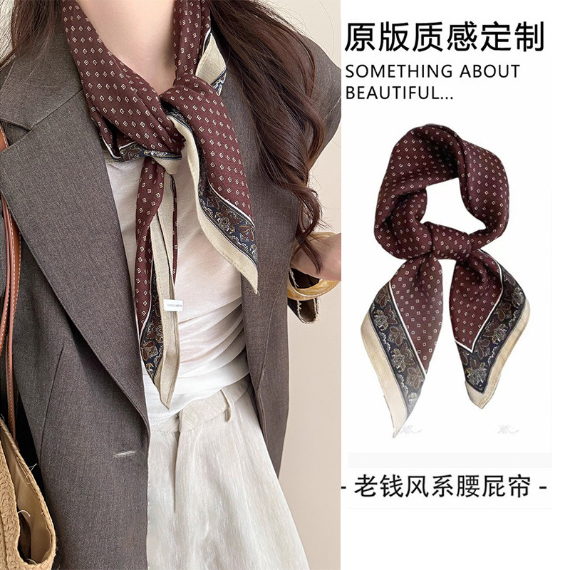 复古咖色腰果花丝巾服装店丝巾老钱风系腰屁帘丝绒领巾小方巾批发