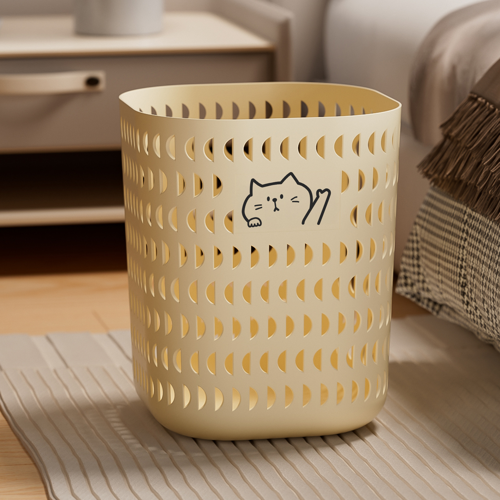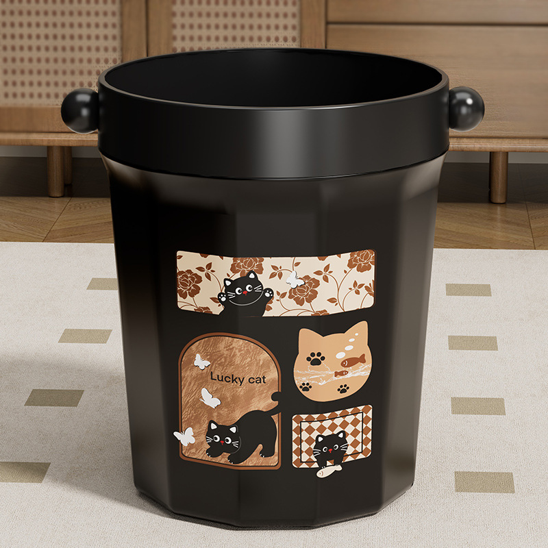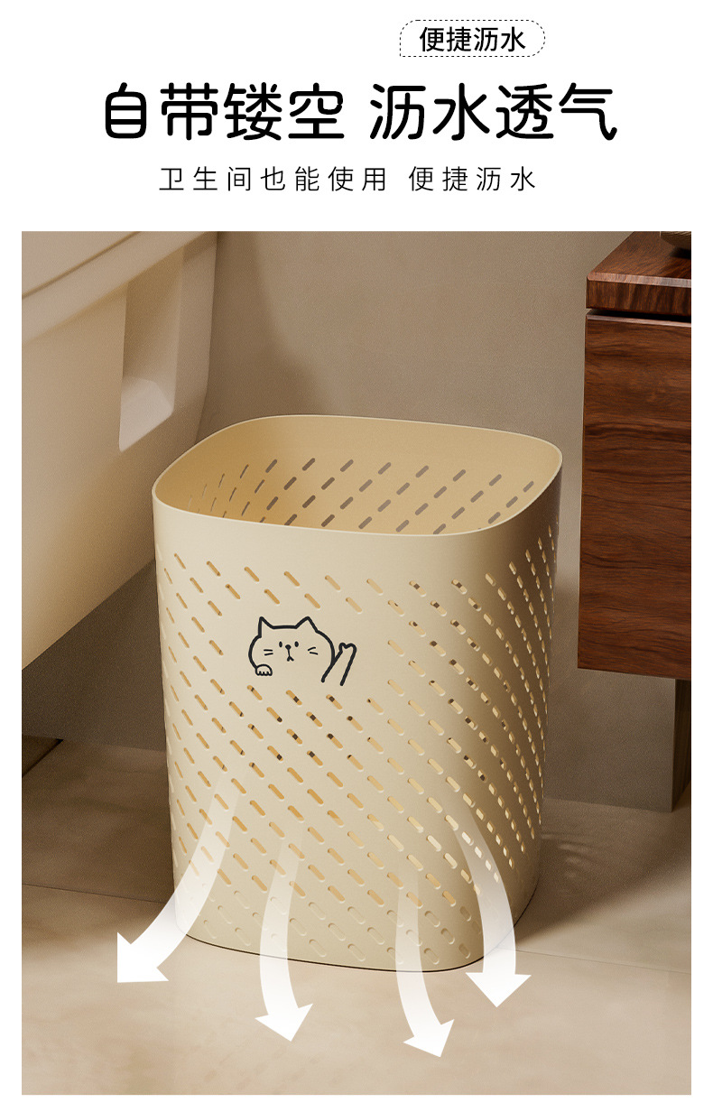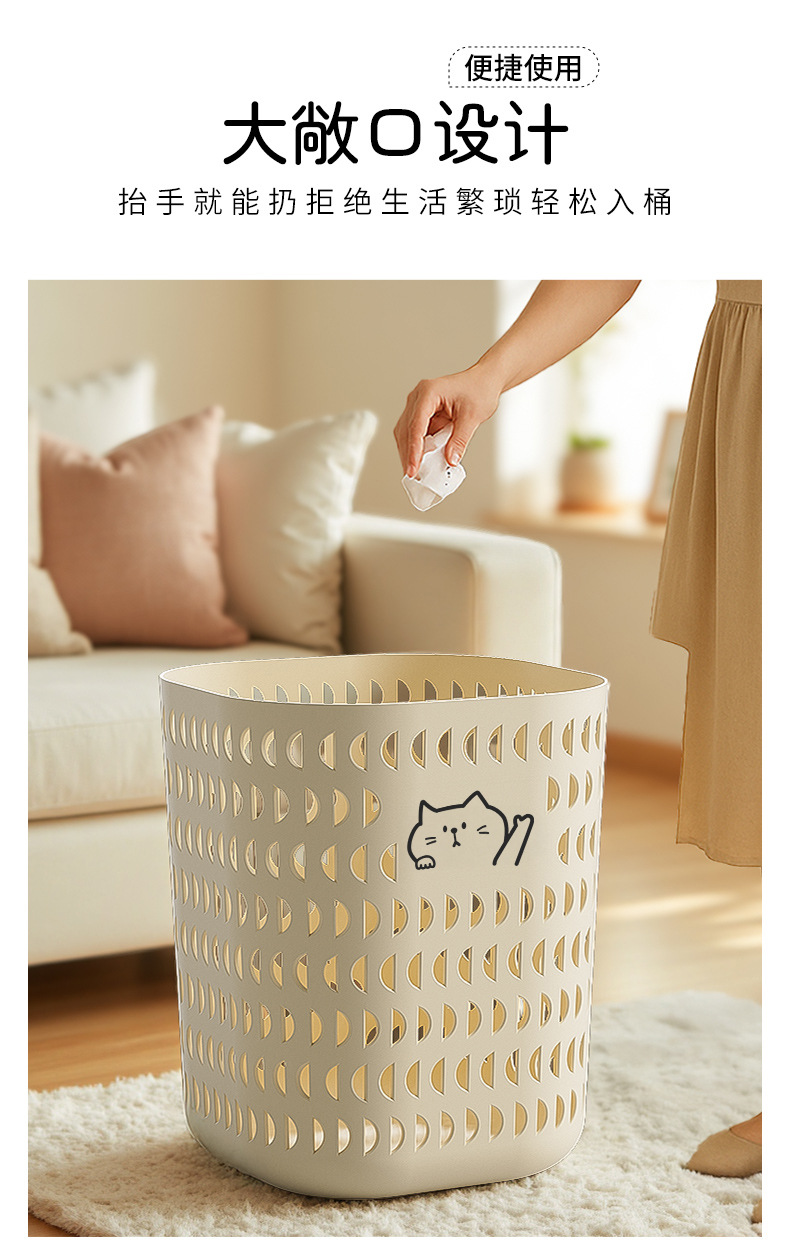 奶油风猫咪镂空垃圾桶家用新款客厅卧室卫生间大号无盖卫生桶纸篓