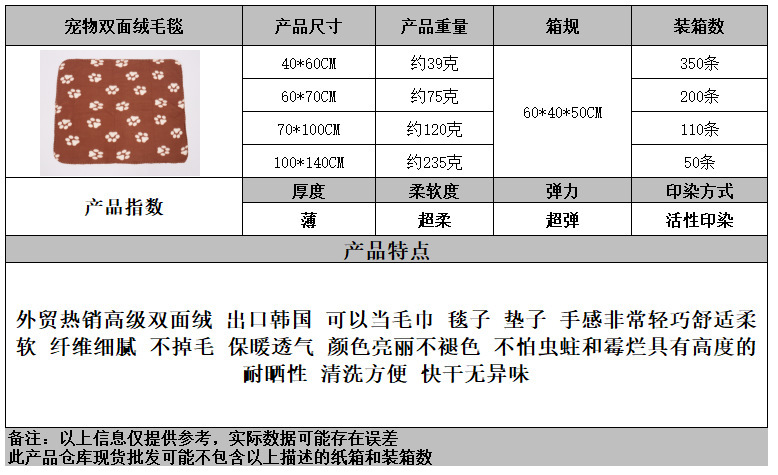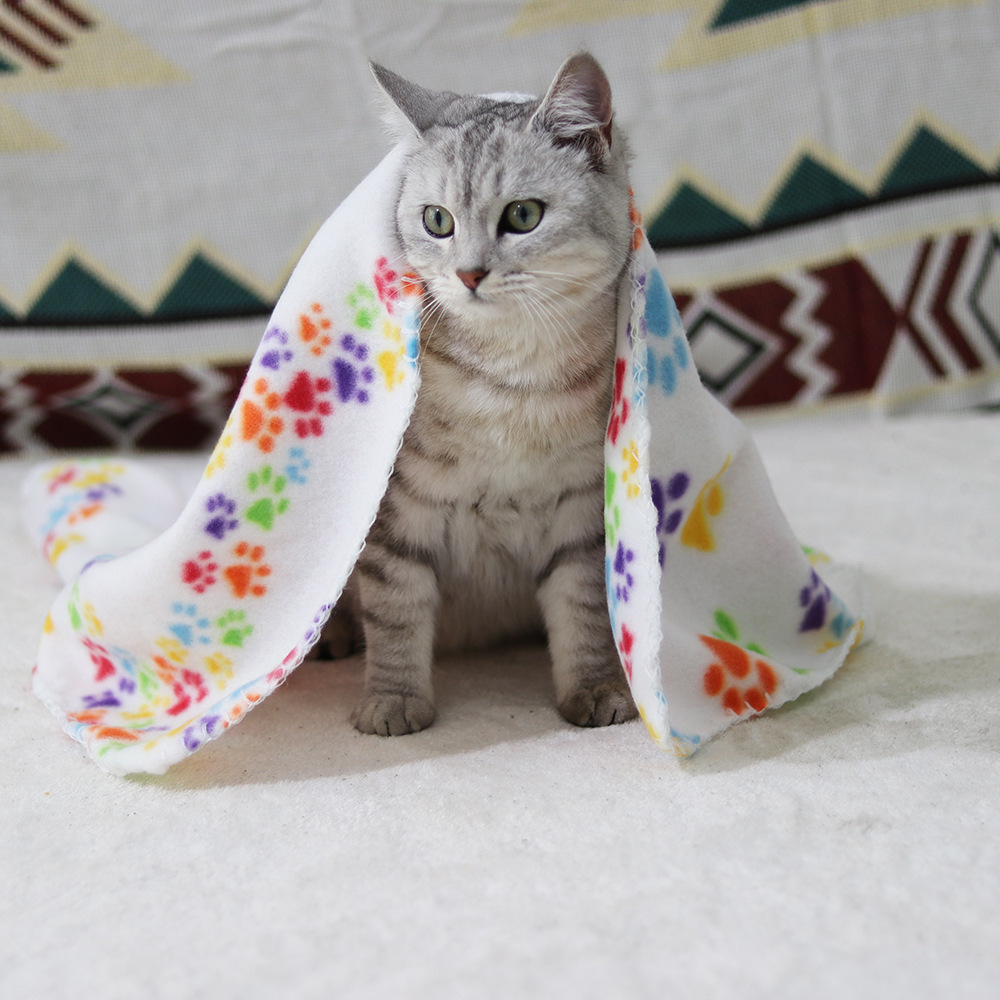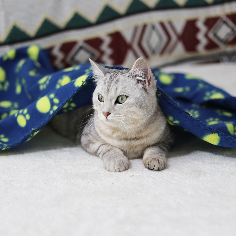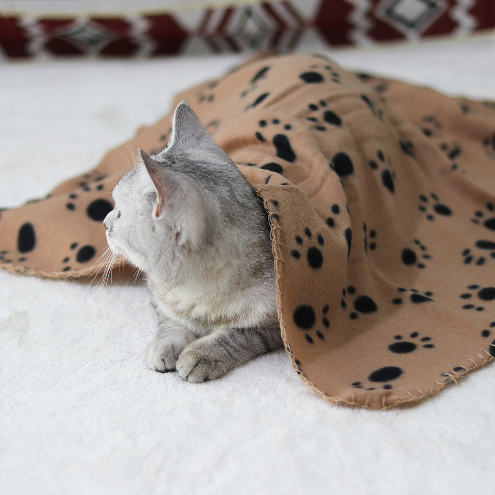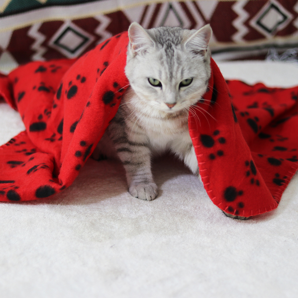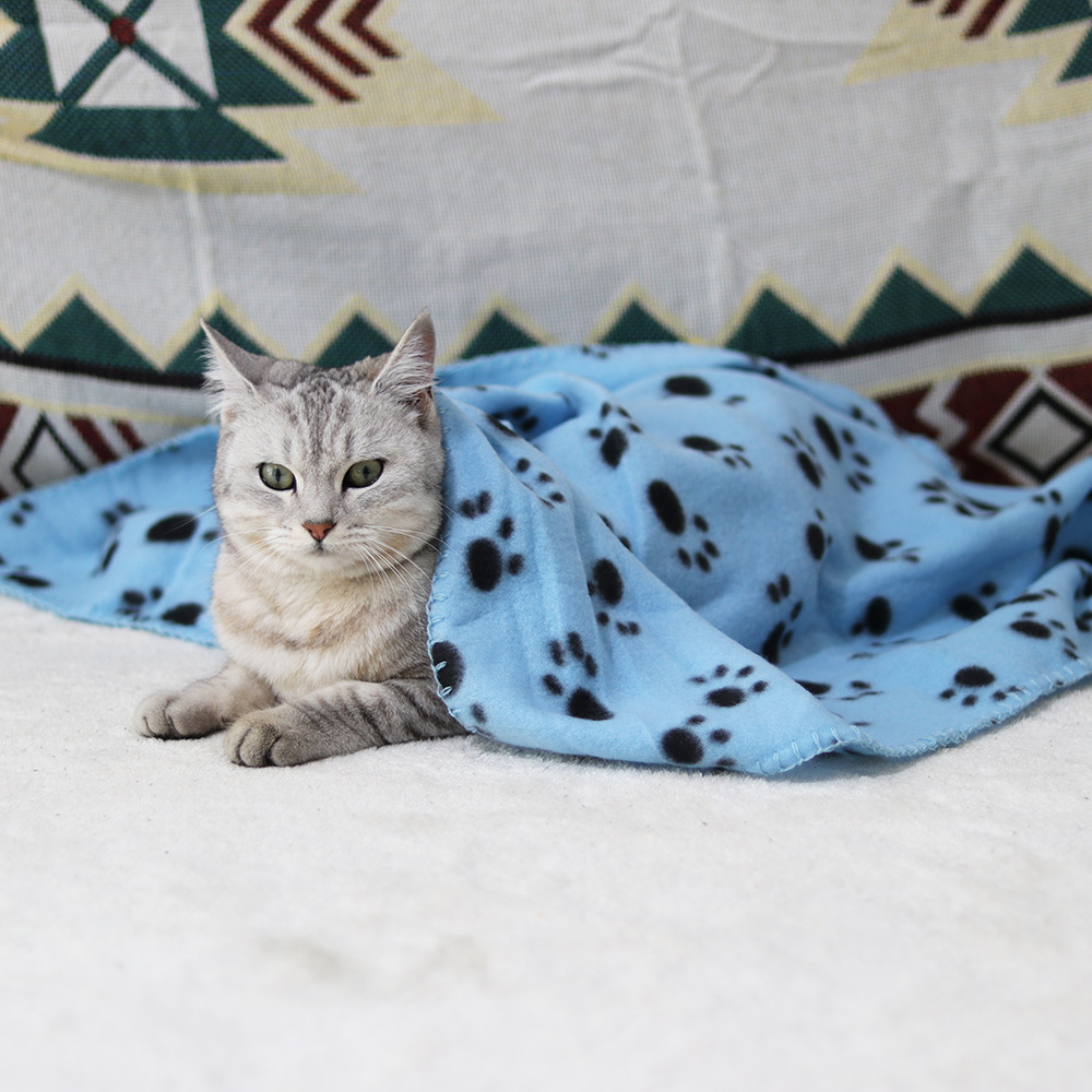 跨境宠物用品猫狗爪印双面绒毯秋冬保暖毛毯睡垫窝垫地毯四季通用