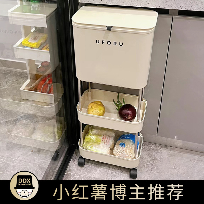 Uforu高ゴミ箱厨房移動ミッキー二重物置棚大容量乾湿分離2025新型