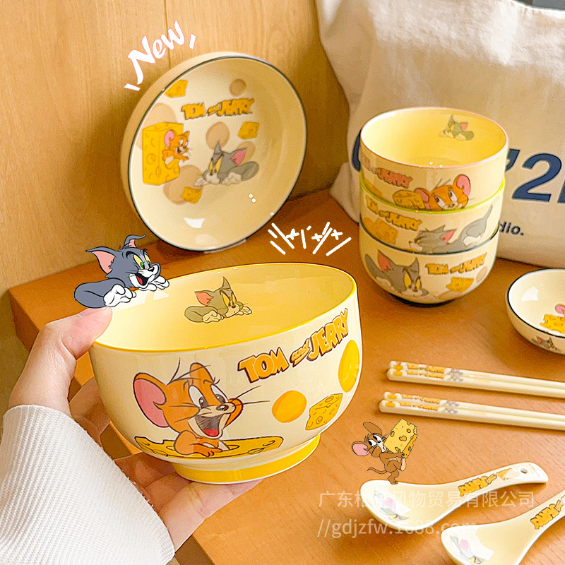 正版猫和老鼠陶瓷餐具家用高颜值儿童宝宝女生吃饭碗个人专用碗碟