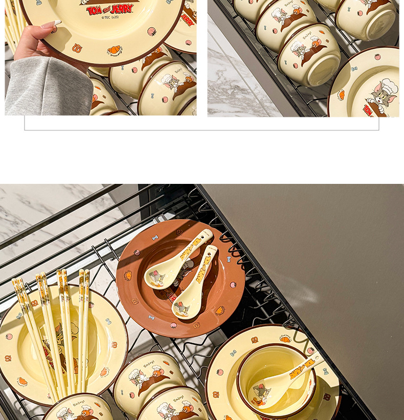 猫和老鼠餐具碗碟套装家用2025新款可爱情侣碗筷高颜值陶瓷碗盘子