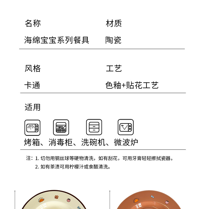 海绵宝宝联名饭碗家用陶瓷米饭碗2025新款可爱风饭碗卡通餐具套装