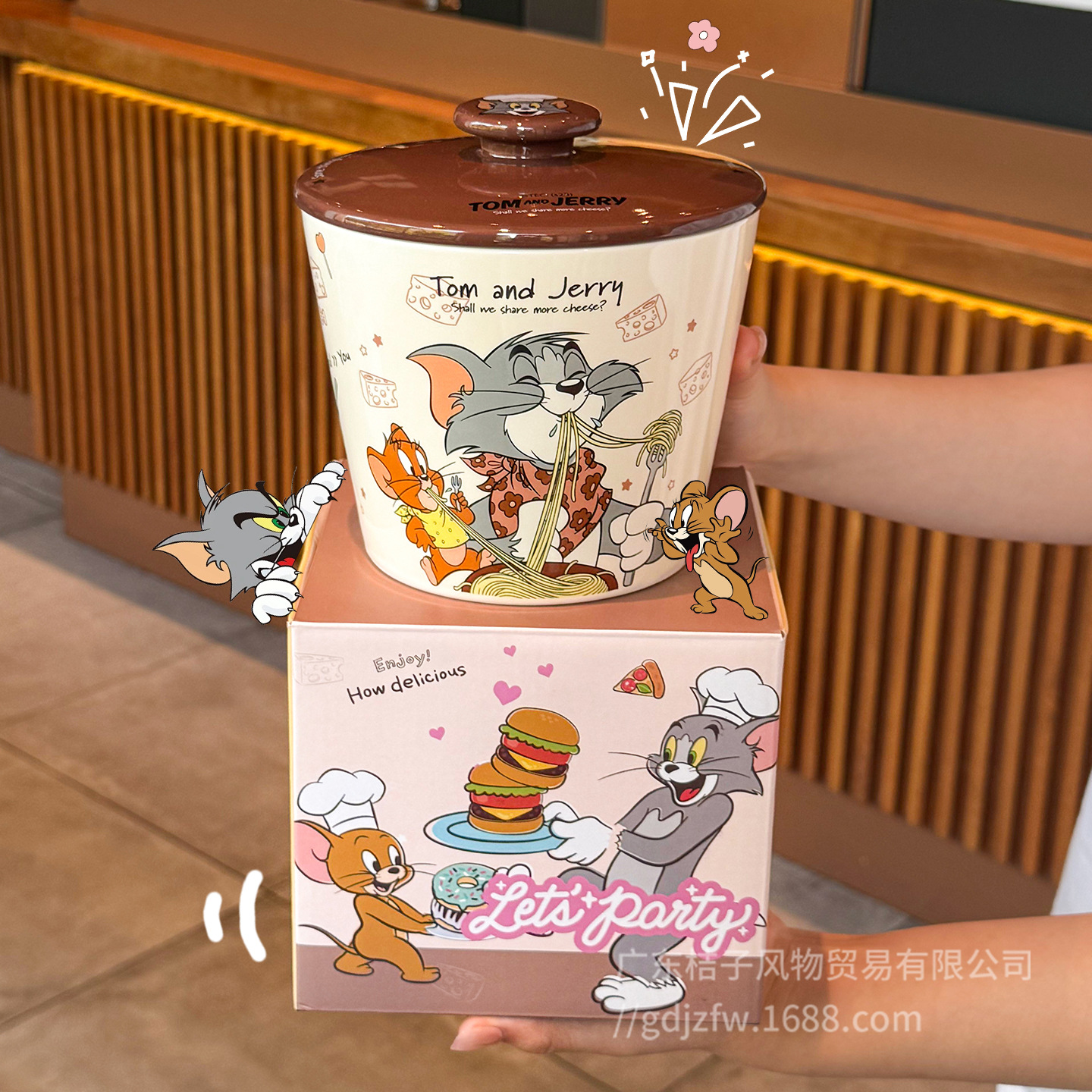 猫和老鼠泡面碗陶瓷带盖宿舍用学生泡面杯大容量螺蛳粉碗可爱汤碗
