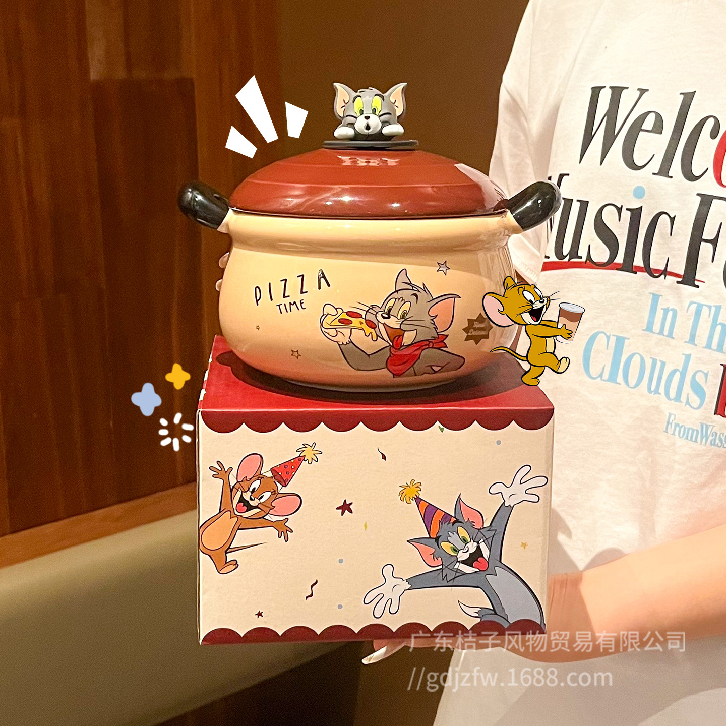 正版猫和老鼠陶瓷双耳泡面碗大容量高颜值学生宿舍上班族煮面大碗