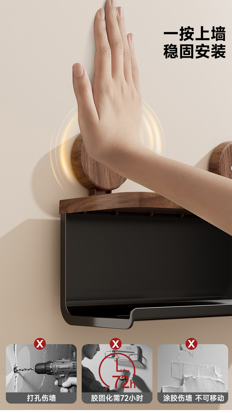 胡桃木電動歯ブラシ棚棚棚穴なしトイレ浴室壁掛け式洗面台嗽カップ棚