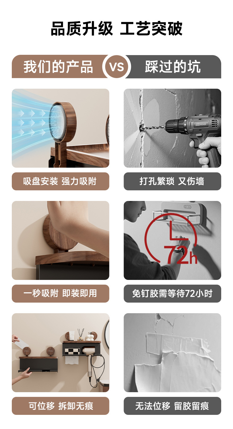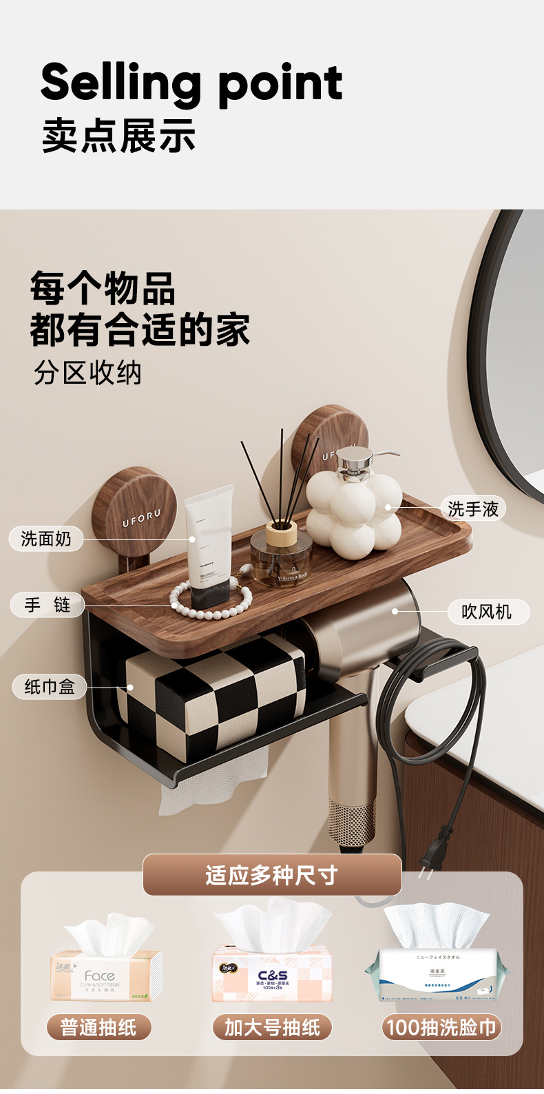 吸盘纸巾盒家用卫生间免打孔抽纸盒多功能浴室洗漱台吹风机收纳架