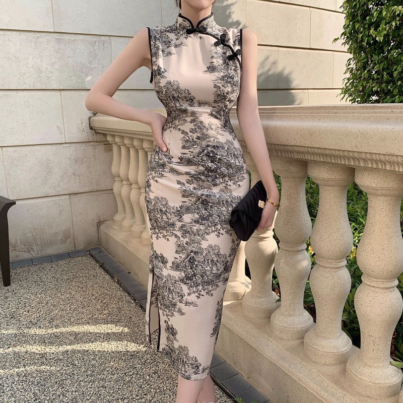 2024夏の新型軽熟風フランス優雅高級気質女神範チャイナドレス改良砕花ワンピース