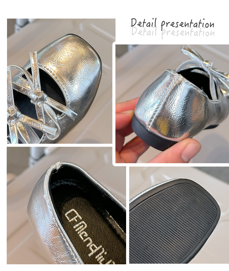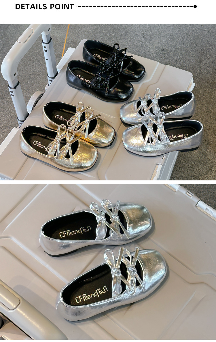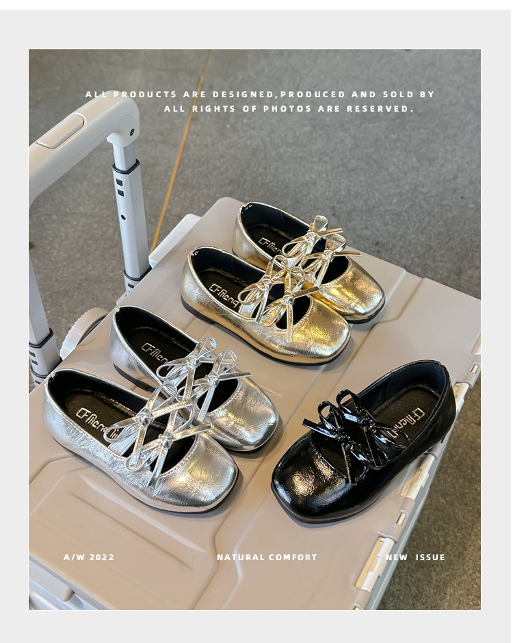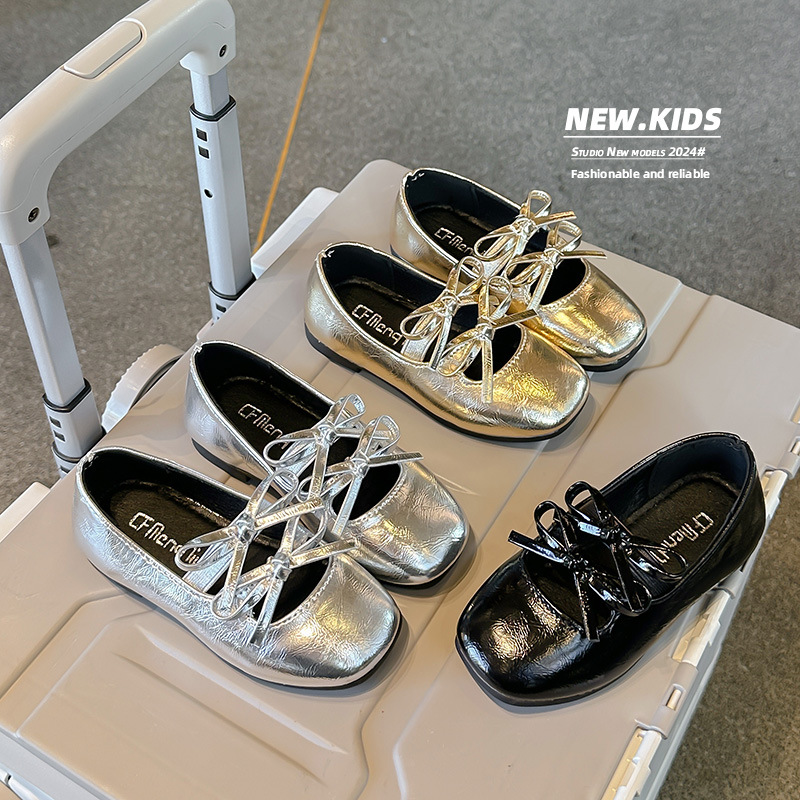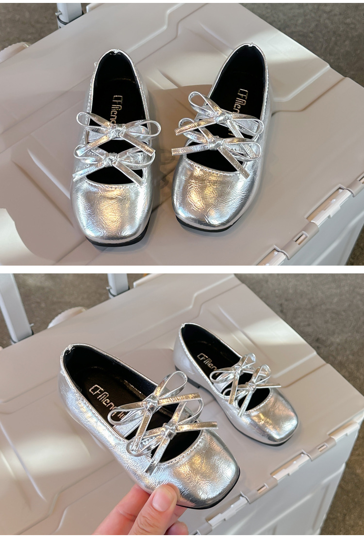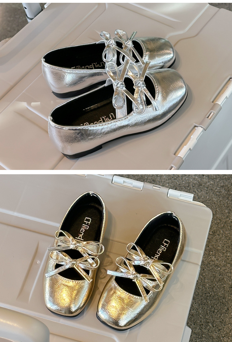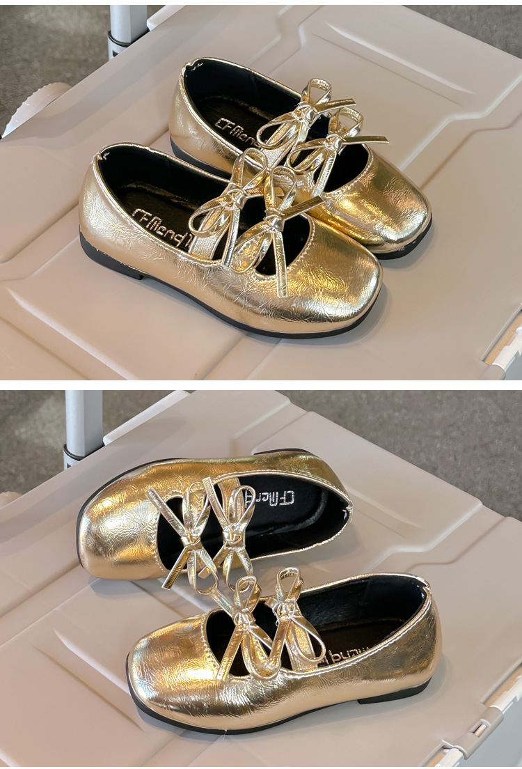 2025春秋季新款可爱小蝴蝶结女童舞蹈鞋软底童鞋儿童小皮鞋单鞋