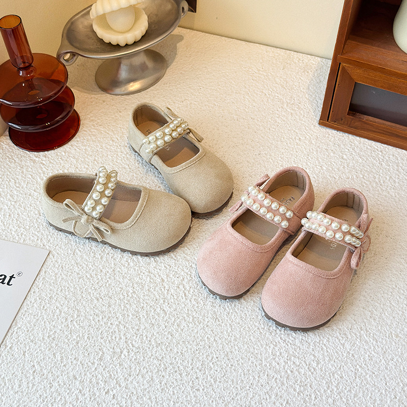 2024秋の新型子供の靴のお姫様の靴の子供のダンスの靴の柔らかい底の真珠の靴の代行