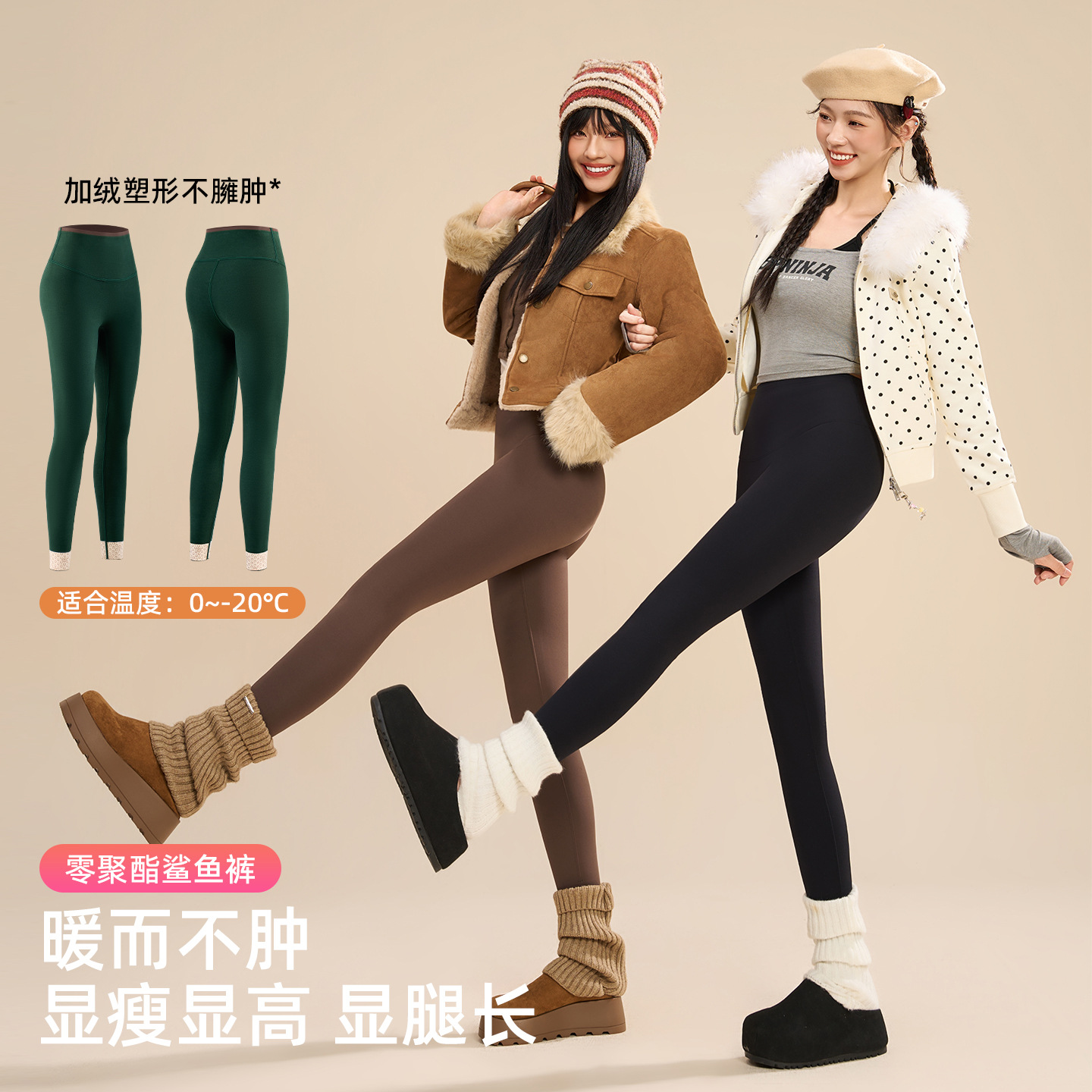 零聚酯吸湿发热10A抗菌加绒保暖秋冬鲨鱼裤女士打底裤高腰瑜伽裤