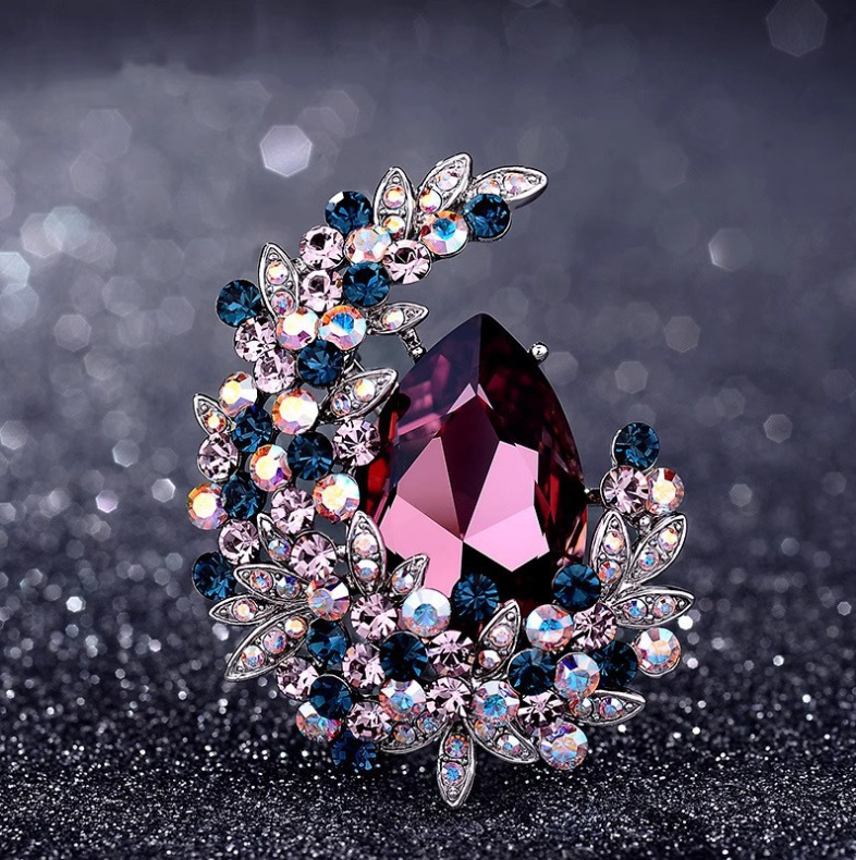欧式水晶紫色郁金香胸针高档女精致优雅胸花别针大衣外套配饰