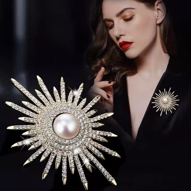 2026新款胸针时尚满钻闪耀太阳花胸花别针西装毛衣开衫搭配饰品