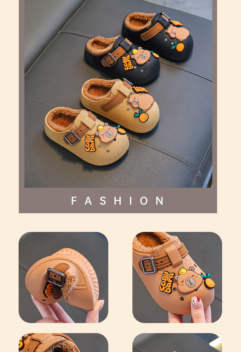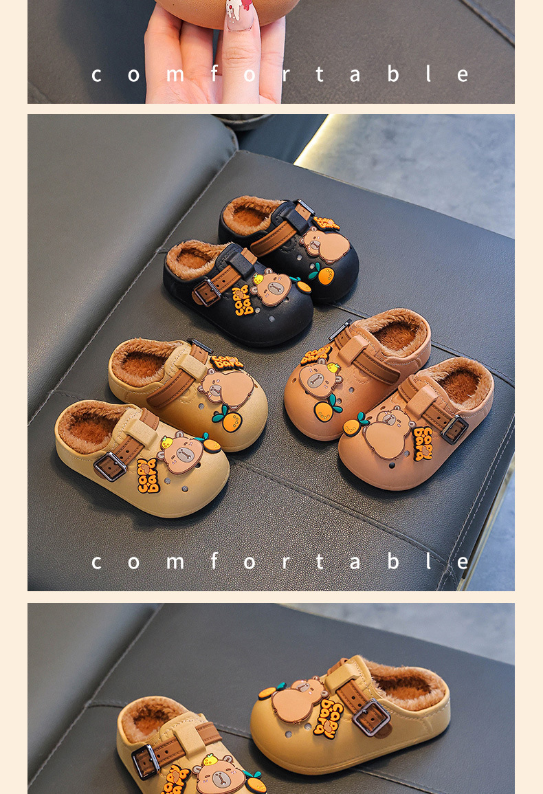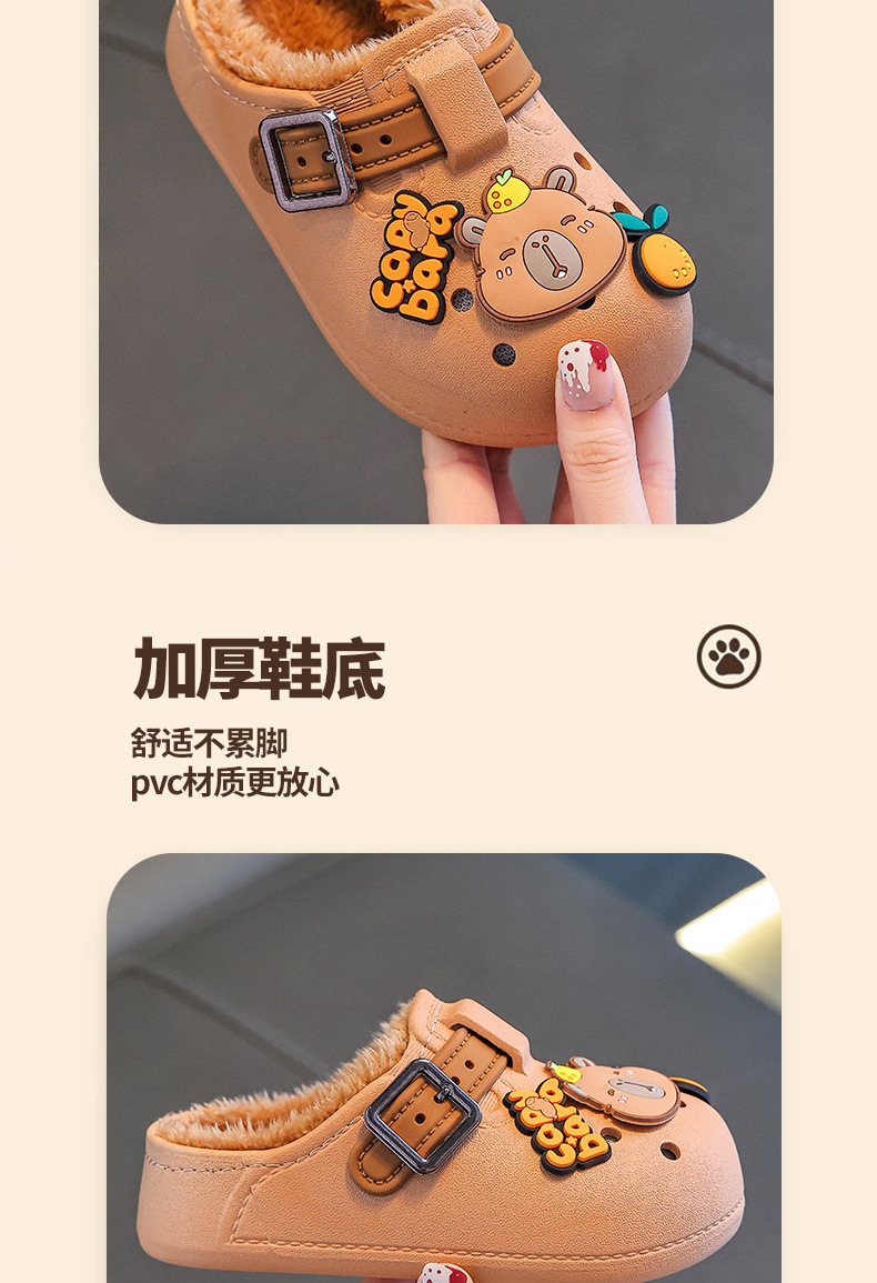 卡皮巴拉秋冬季儿童棉拖鞋男女童保暖加绒防水中大童可爱宝宝棉鞋
