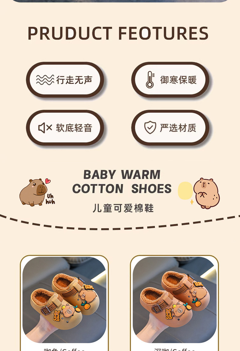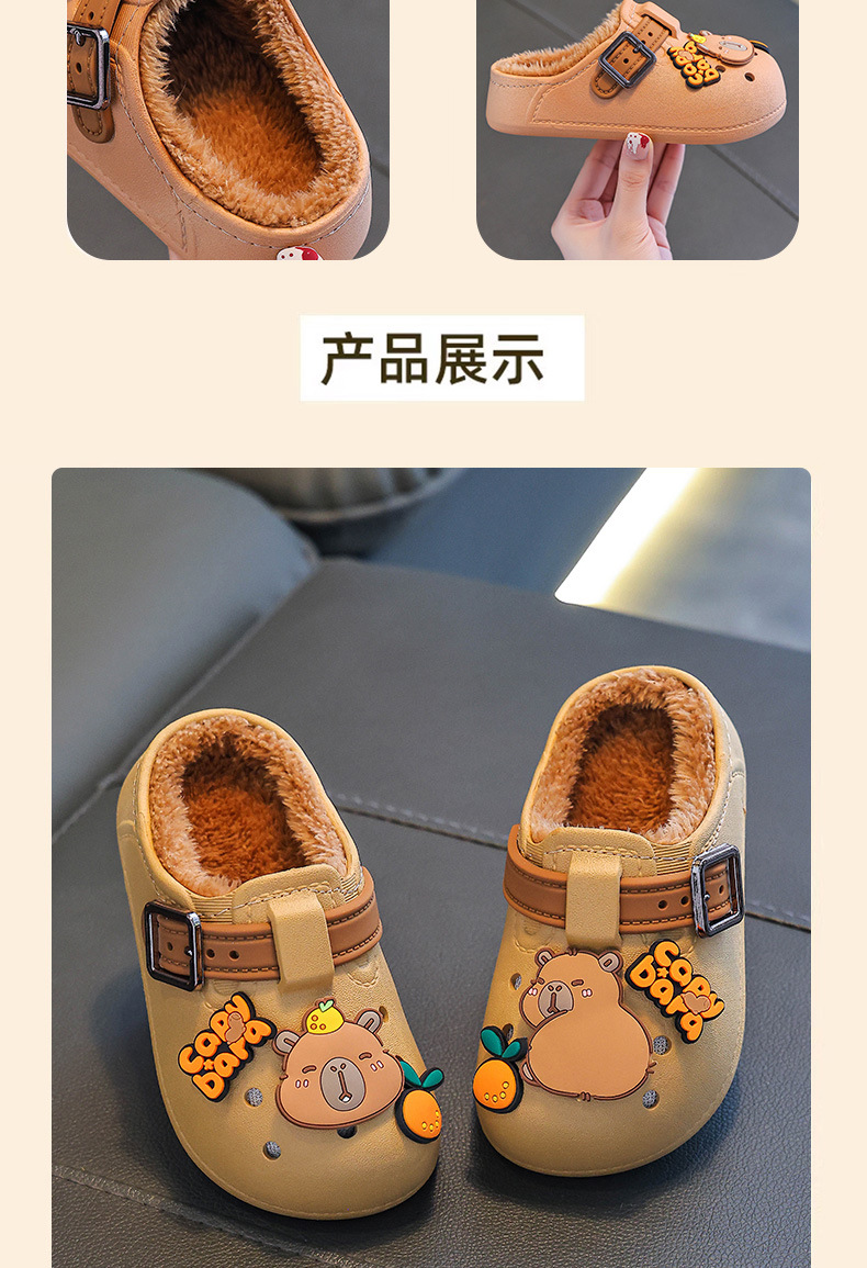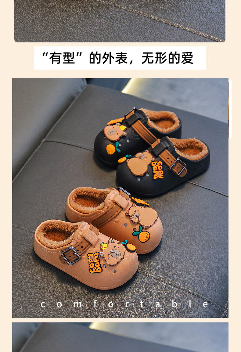 卡皮巴拉儿童棉拖鞋冬男女童保暖加绒防水中小童外穿小孩包跟棉鞋