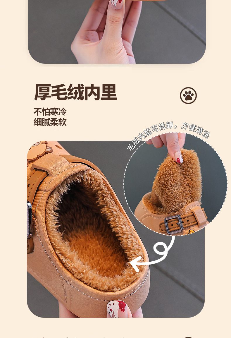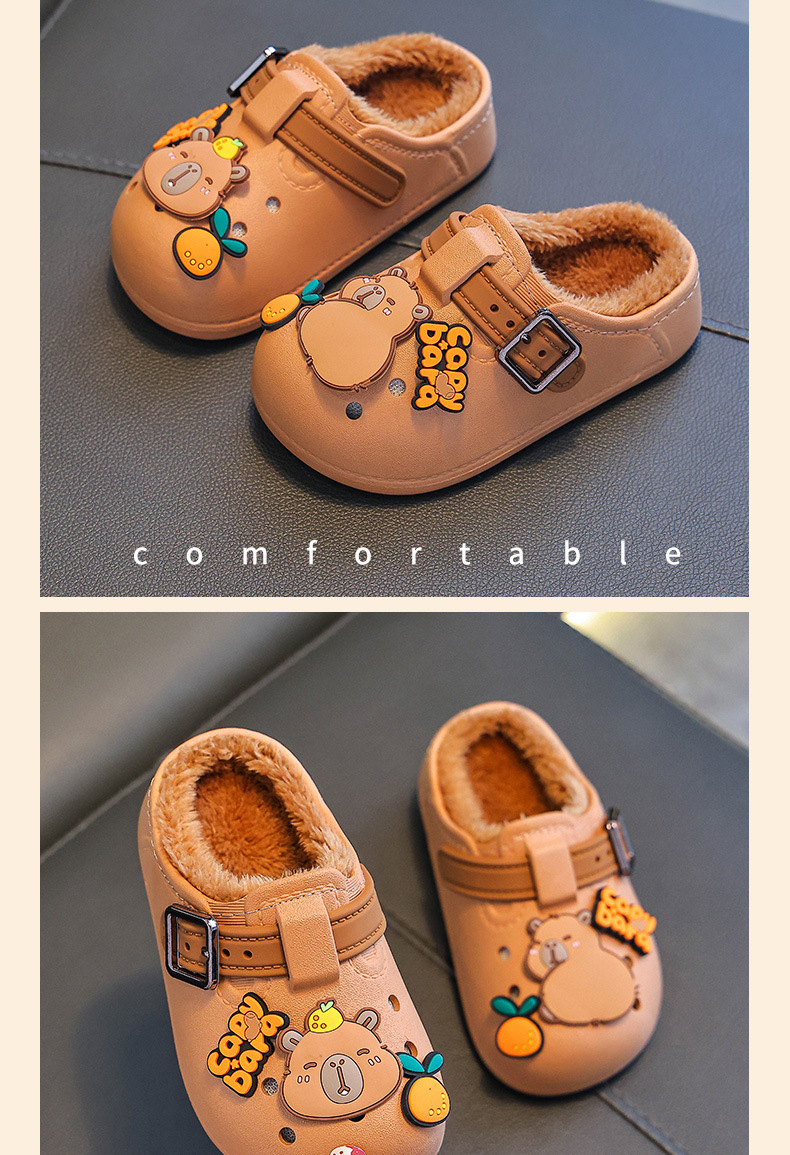 卡皮巴拉儿童棉拖鞋冬男女童保暖加绒防水居家中大童小孩包跟棉鞋