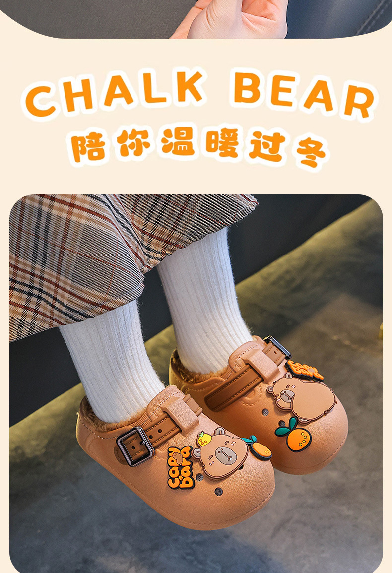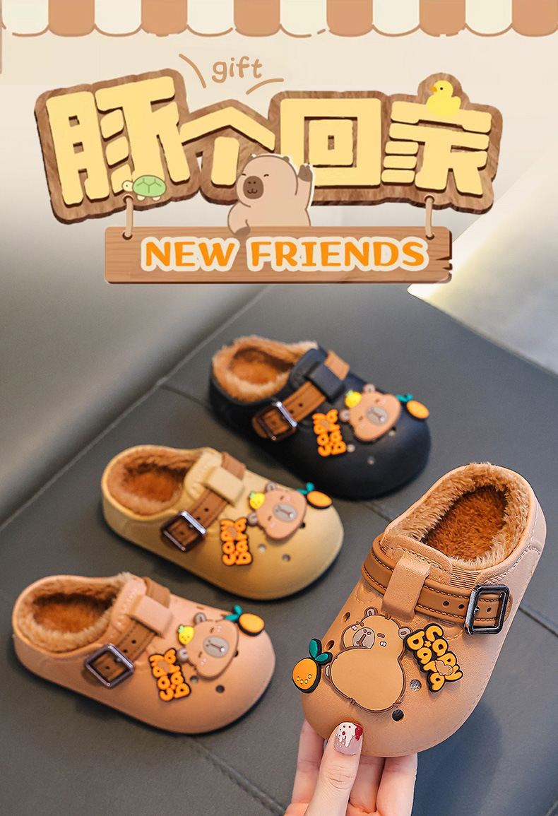 卡皮巴拉儿童勃肯棉鞋男宝外穿2025新款秋冬女可爱男童棉拖鞋包跟