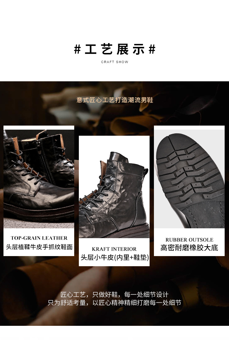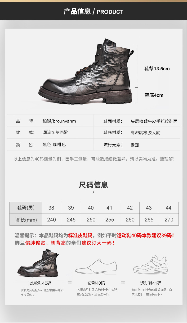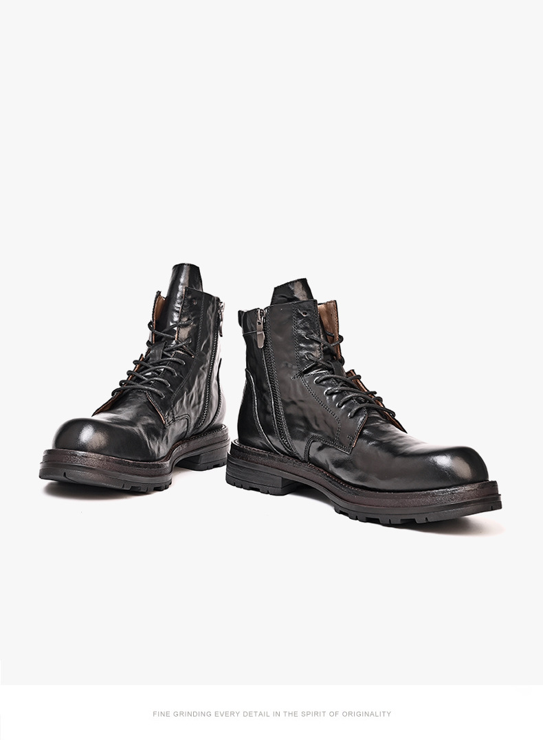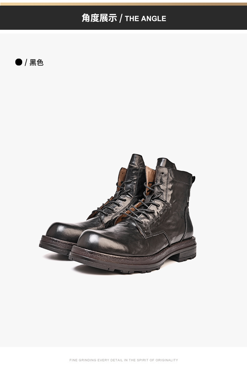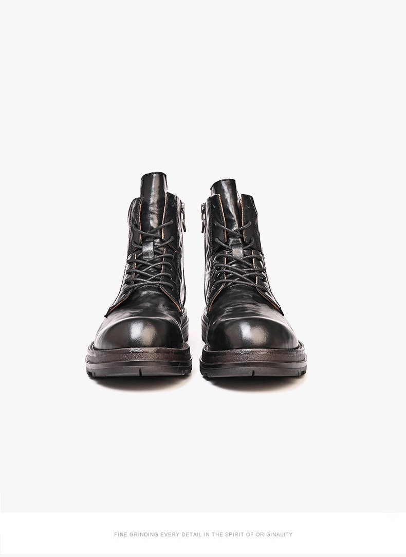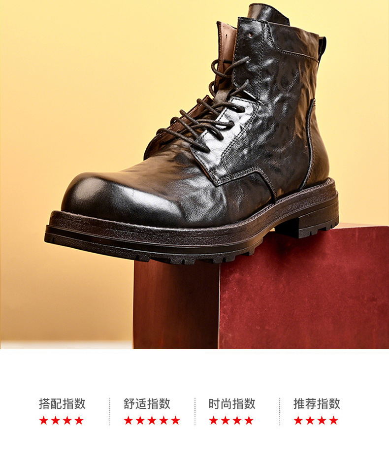 铂巍马丁靴男中帮英伦风复古真皮厚底短靴头层牛皮厚底潮流工装靴