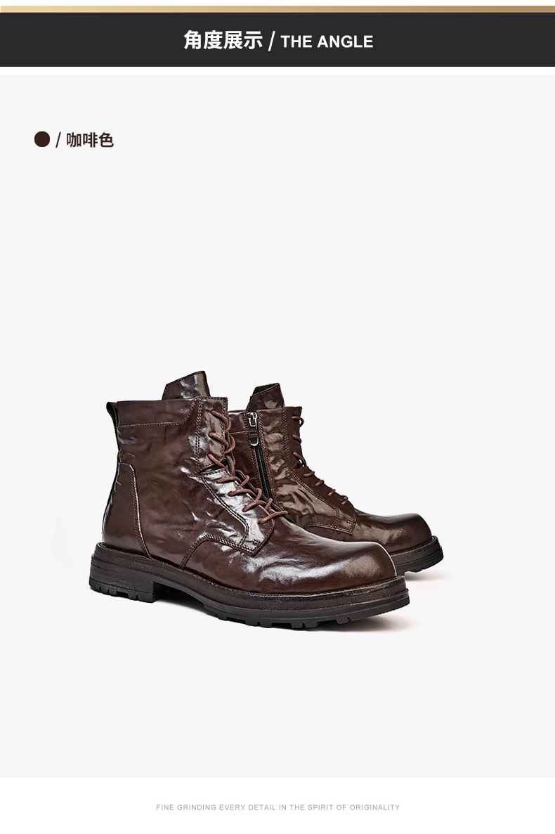 铂巍秋冬季新款马丁靴男士头层小牛皮工装靴真皮英伦复古时尚短靴
