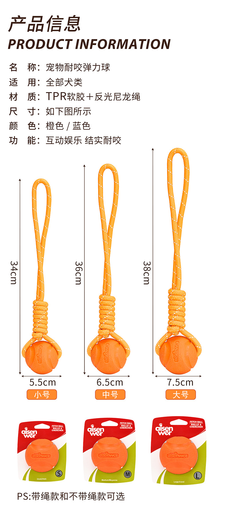 艾森威尔狗狗耐咬绳结球弹力磨牙训练互动玩具宠物用品跨境玩具球