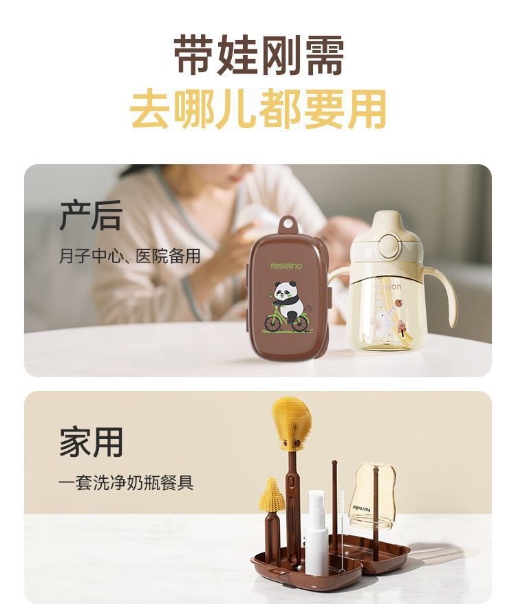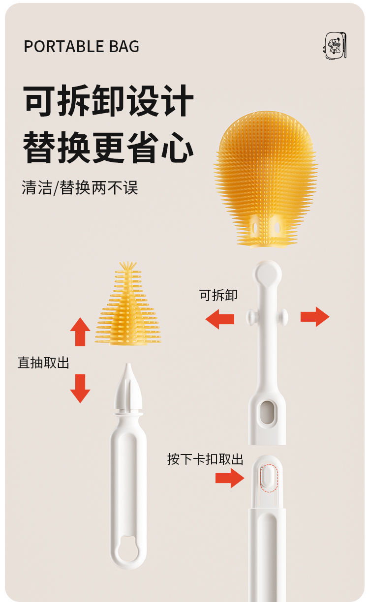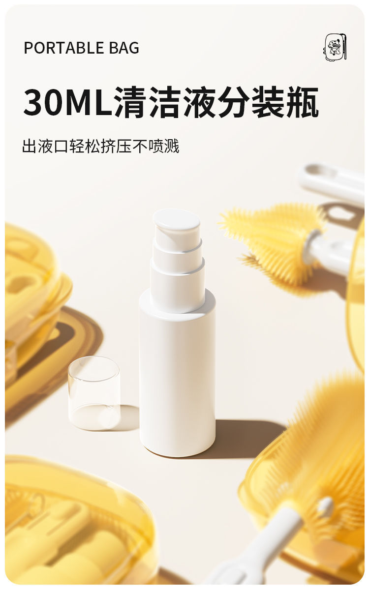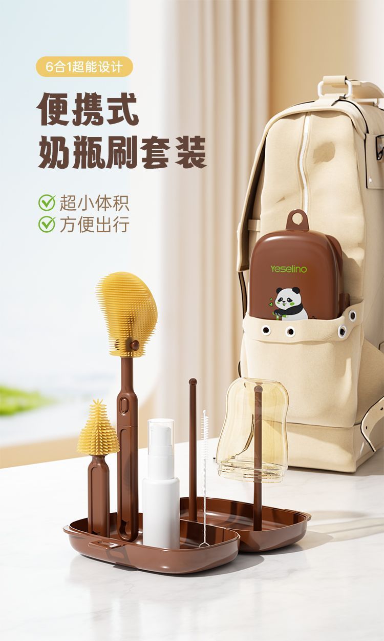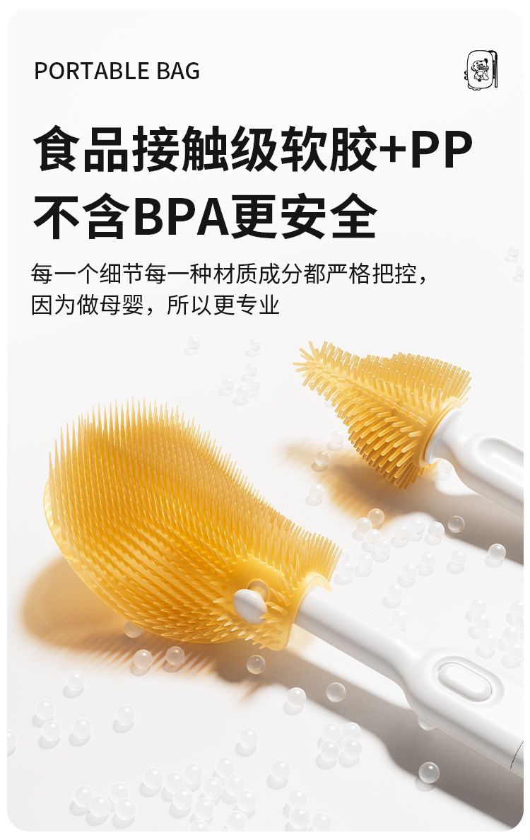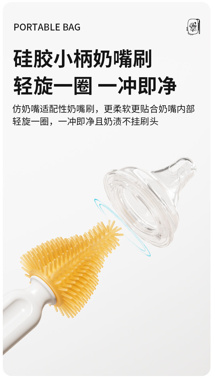 便携式奶瓶刷套装新生婴儿专用外出旅行清洗硅胶刷多功能