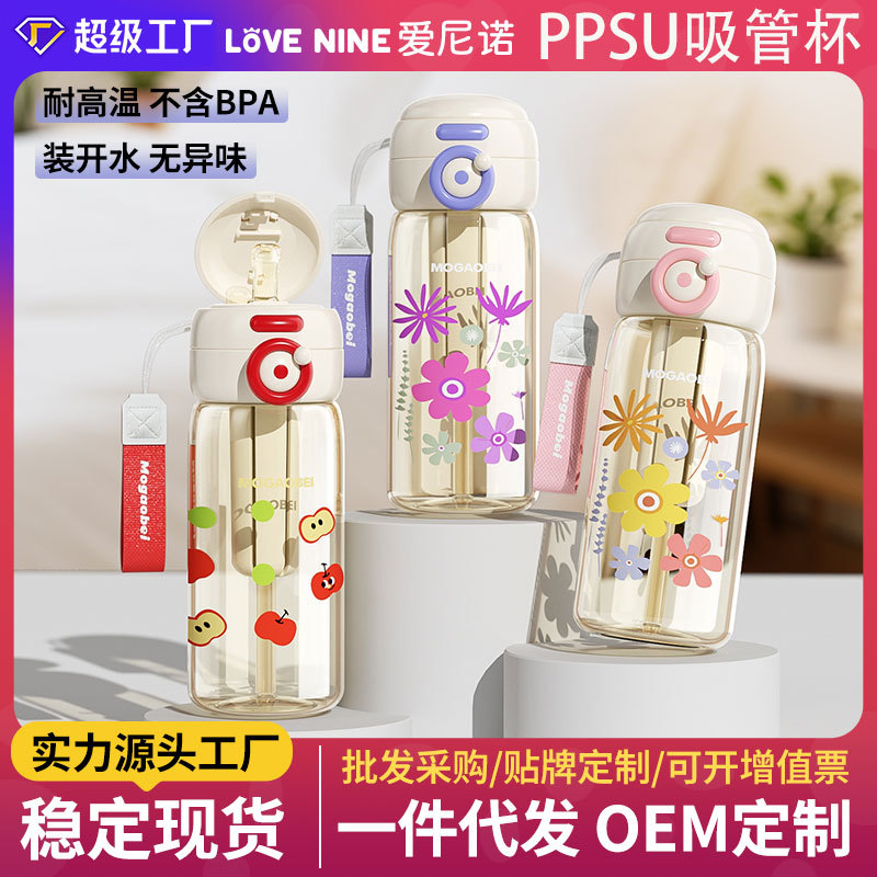 PPSU 高颜值大容量孕妇吸管杯耐高温便携儿童水杯带茶漏批发定制