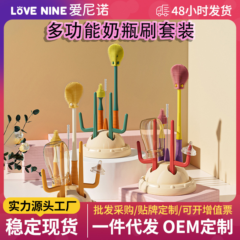 シリコン哺乳瓶ブラシ赤ちゃん清潔工具赤ちゃん専用携帯型ブラシ排水棒収納セット棚