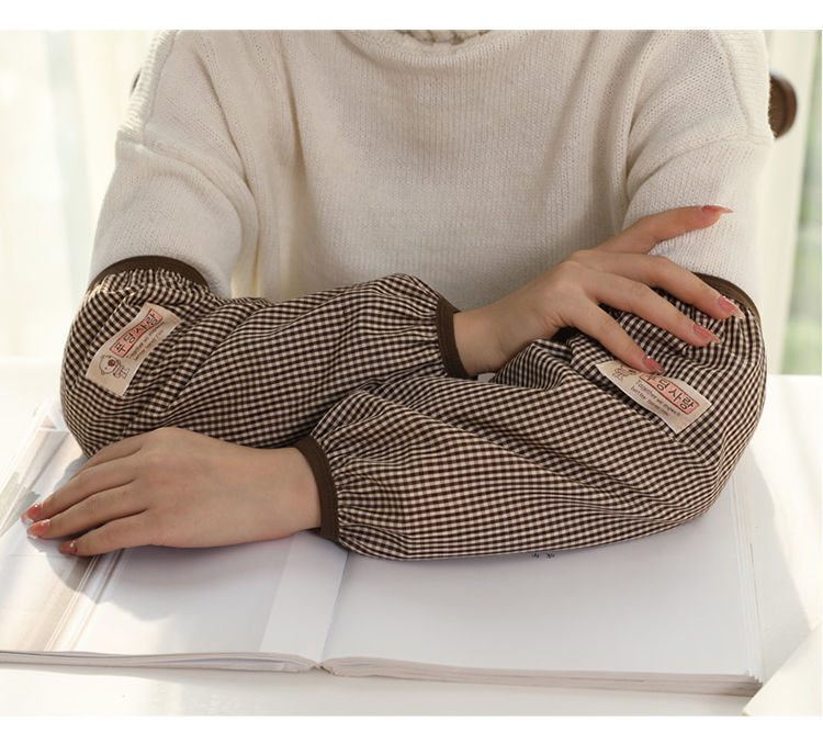 暖かい秋冬袖カバー女性綿布格子カバー袖冬家事仕事汚れ防止袖ダウンジャケット袖