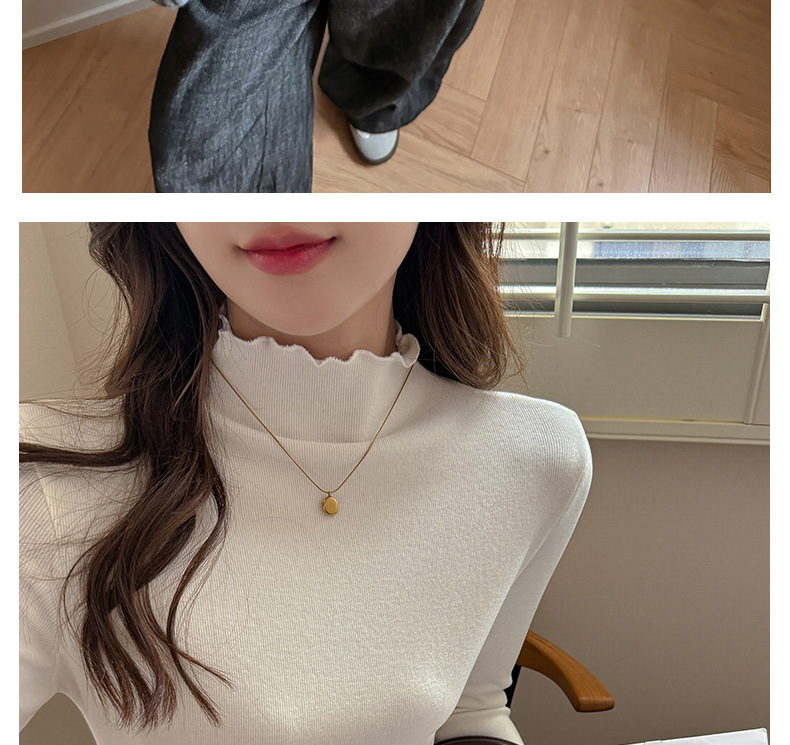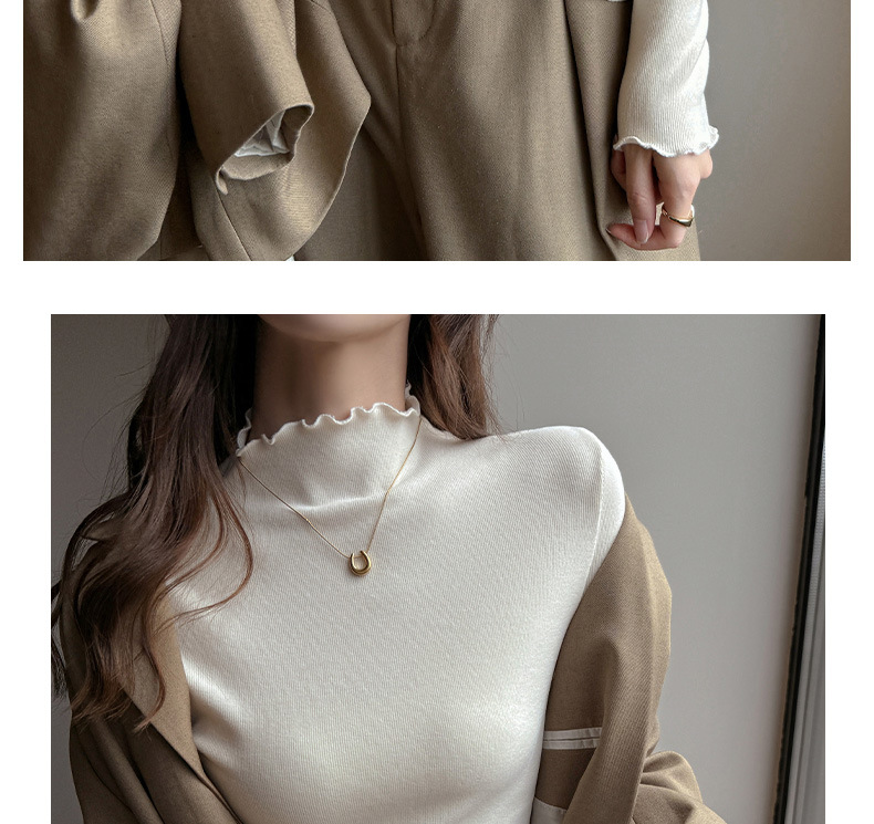 欧玛莱 半高领木耳边抓绒纯色显瘦内搭打底衫T恤冬季百搭上衣4933