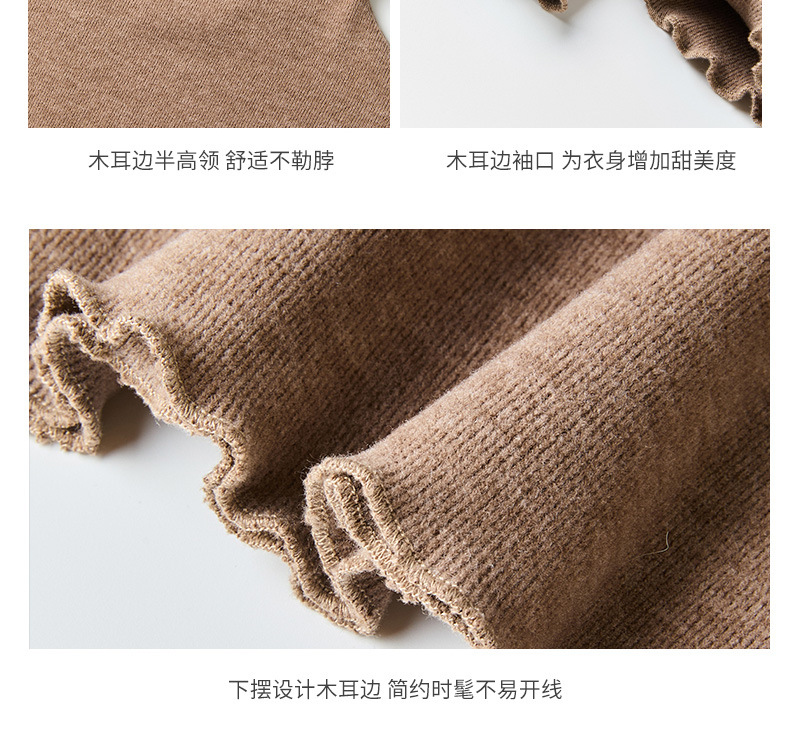 W秋冬季韩系木耳边半高领打底衫女高级感仿羊绒磨毛加厚内搭上衣