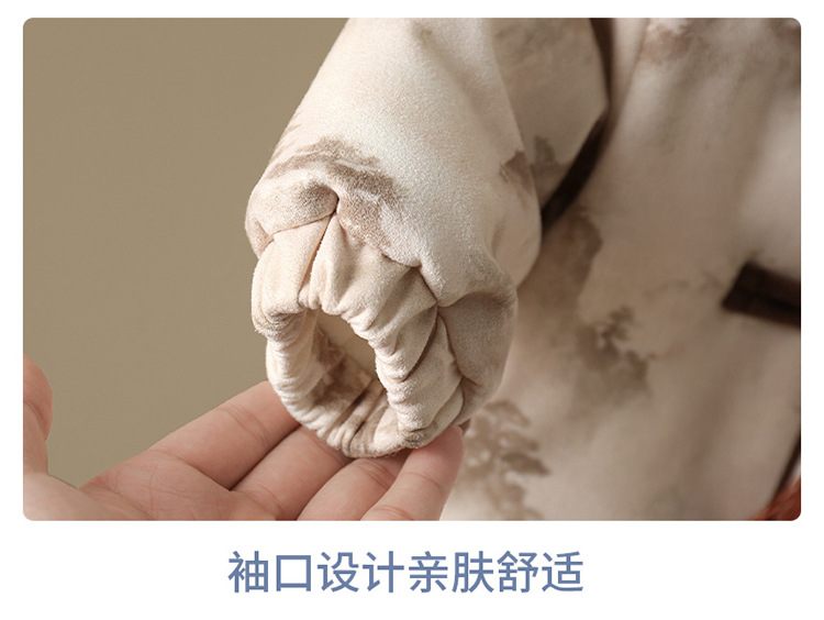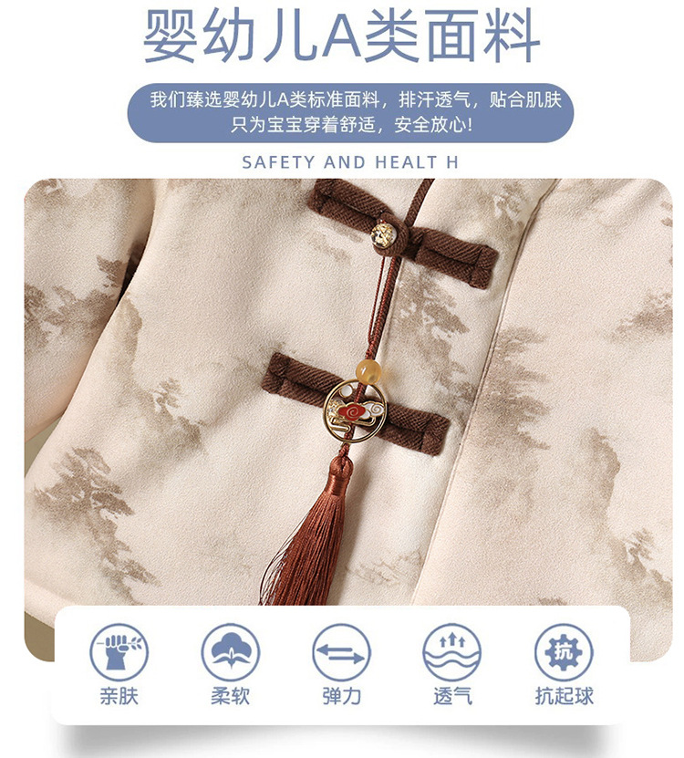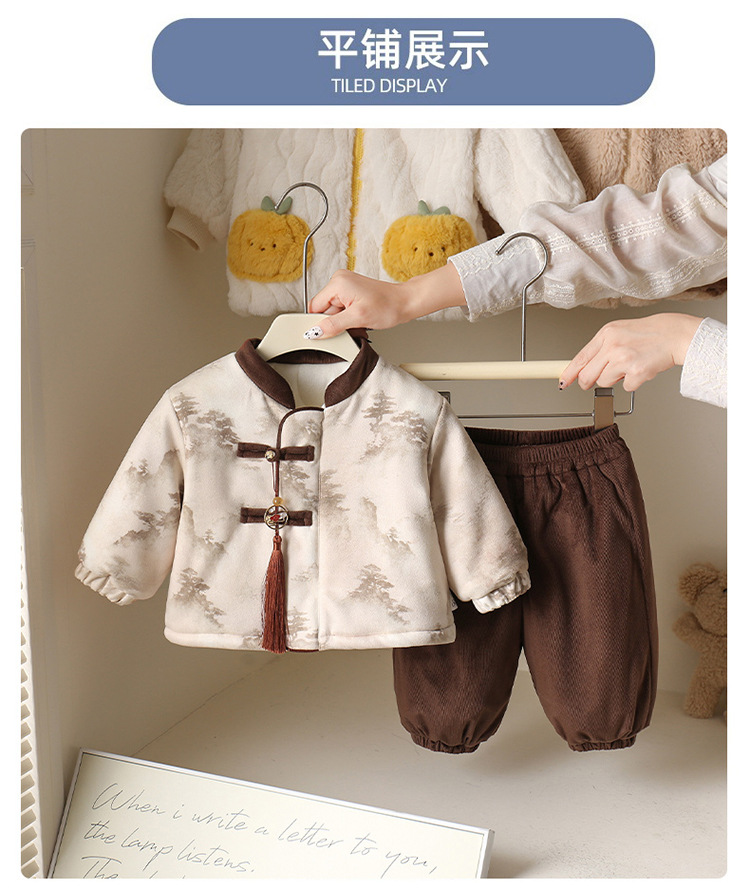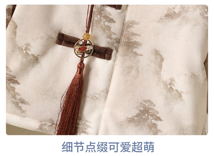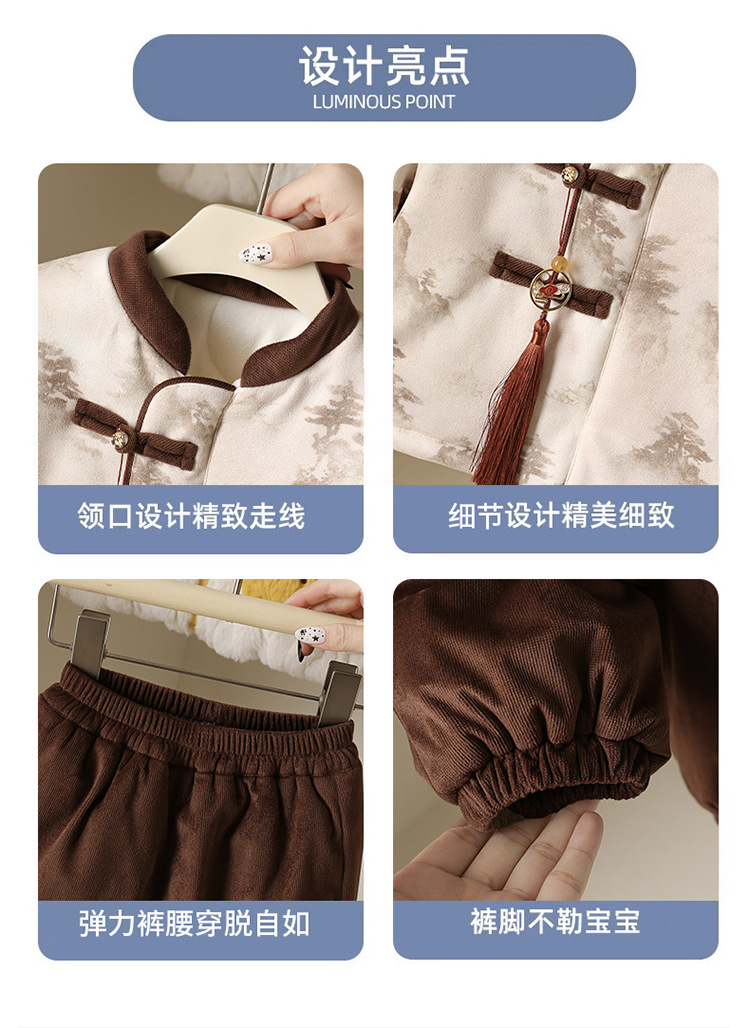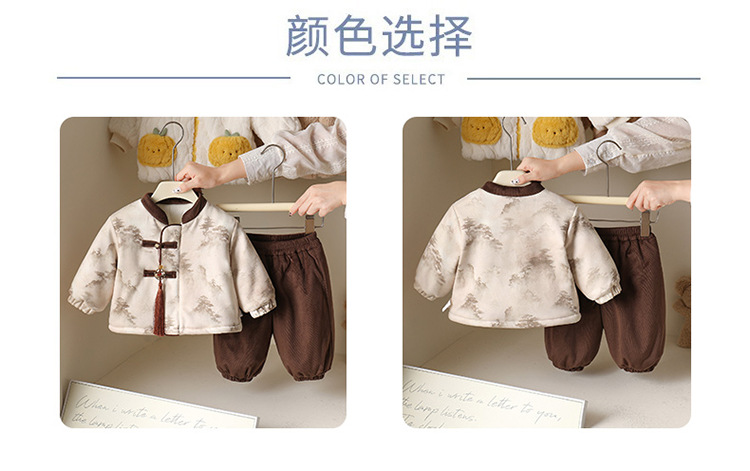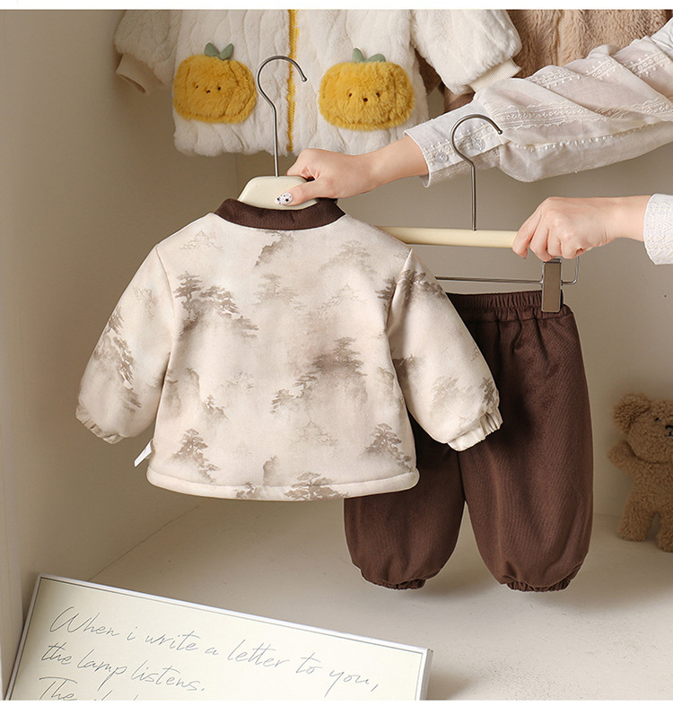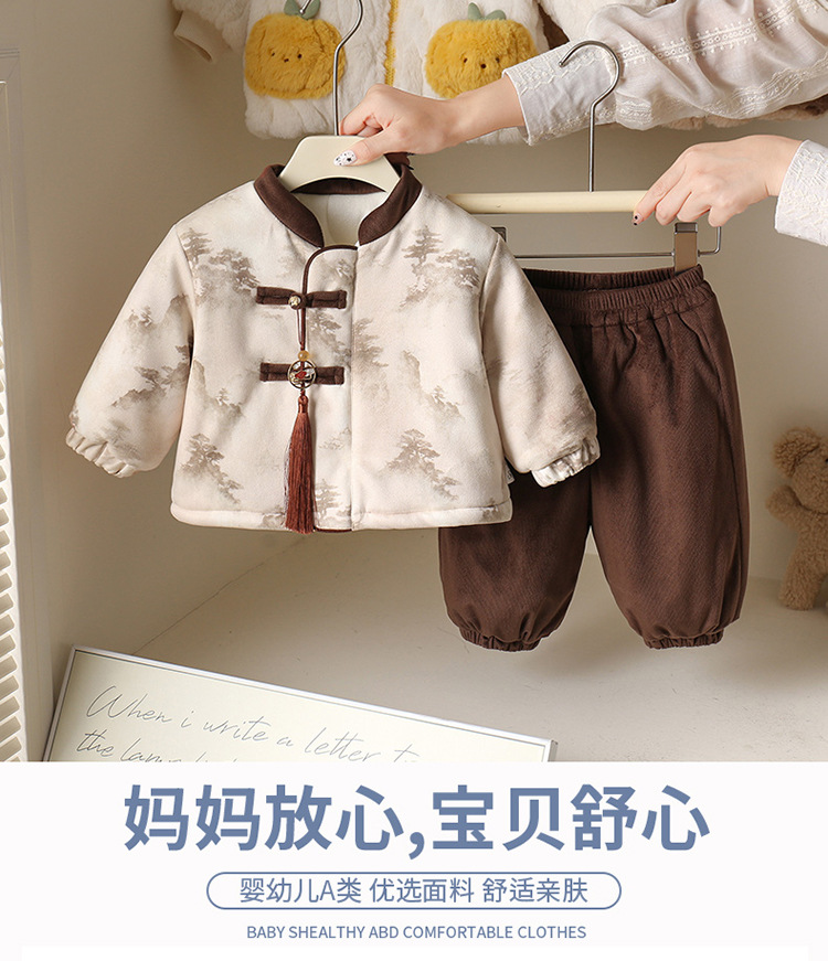 冬季婴幼儿国风山水画加绒衣服宝宝新中式冬天可爱加绒加厚两件套