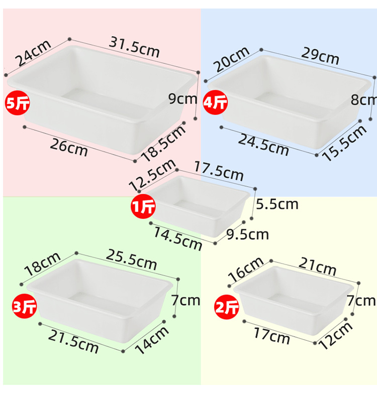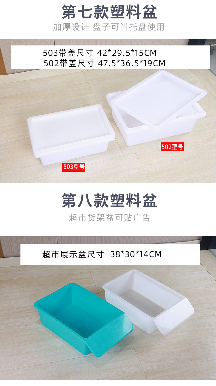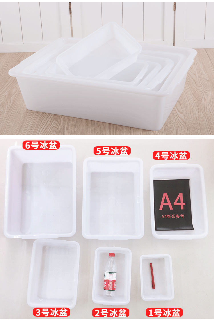 1号冰盆23.5*16.5*6.5cm,2号冰盆29*19.5*7.5cm,3号冰盆35*25*8cm,4号冰盆41*29*10cm,5号冰盆44.5*32*11cm,6号冰盆50.5*36.5*13.5cm,白色300盆24*17*8cm,白色301盆29*20*9cm,白色302盆34*24*11cm,白色303盆41*29*13cm,白色304盆46*33*15cm,白色305盆52*39*16cm,白色306盆58.5*44*17.5cm,灰色301盆29*20*9cm,灰色302盆34*24*11cm,灰色303盆41*29*13cm,灰色304盆46*33*15cm,灰色305盆52*39*16cm,灰色306盆58.5*44*17.5cm,白色331盆30*20*12.5,蓝色331盆30*20*12.5cm,绿色331盆30*20*12.5cm,粉色331盆30*20*12.5cm,白色332盆40*30*12.5cm,蓝332盆40*30*12.5cm,绿色332盆40*30*12.5cm,粉色332盆40*30*12.5cm,白色308盆52*38*15cm,灰色308盆52*38*15cm,红色308盆52*38*15cm,蓝色308盆52*38*15cm,黄色308盆52*38*15cm,绿色308盆52*38*15cm,黑色308盆52*38*15cm,白色309带盖盆52*39*20cm,灰色309带盖盆52*39*20cm,加厚503带盖盆42*29.5*15cm,加厚502带盖盆47.5*36.5*19cm,白色超市盆38*30*14cm,蓝绿色超市盆38*30*14cm,501盆30*21*4cm,502盆35*24.5*4.5cm,503盆41*28.5*5cm,504盆46.5cm*32.5*5cm,505盆51*36*5.5cm