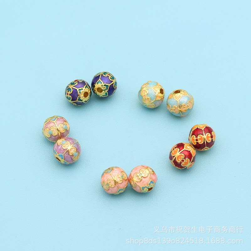 古法金沙金珐琅彩烤蓝滴油通孔圆珠桶珠隔珠diy手链吊坠串珠配件