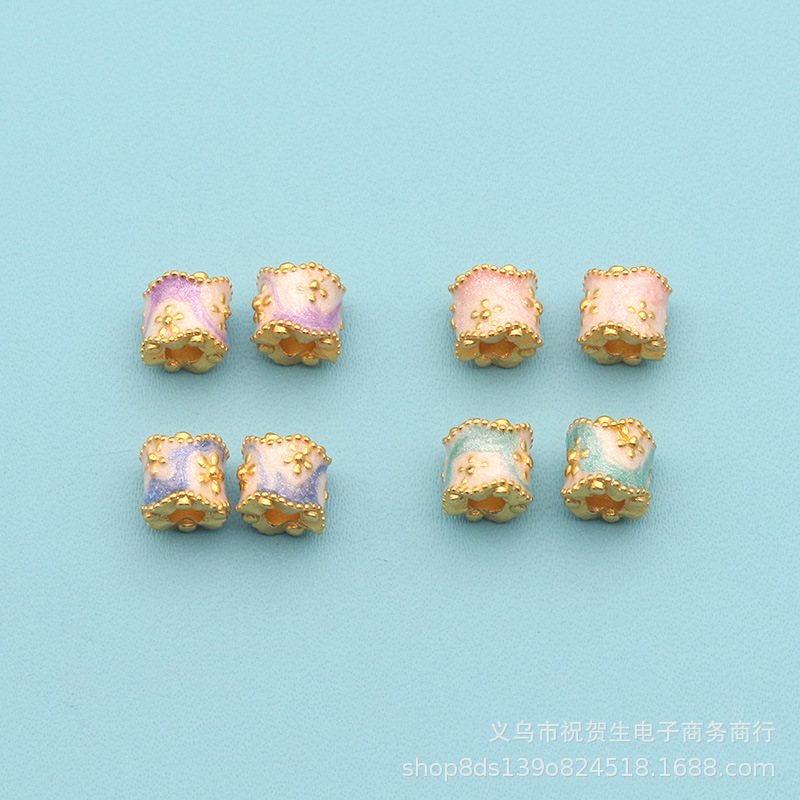 銅金メッキ高色保持オイル滴下七宝焼き青中空スペーサービーズ DIY 手作りビーズアクセサリー