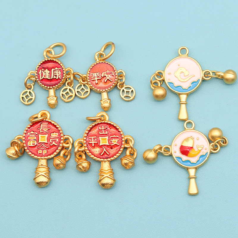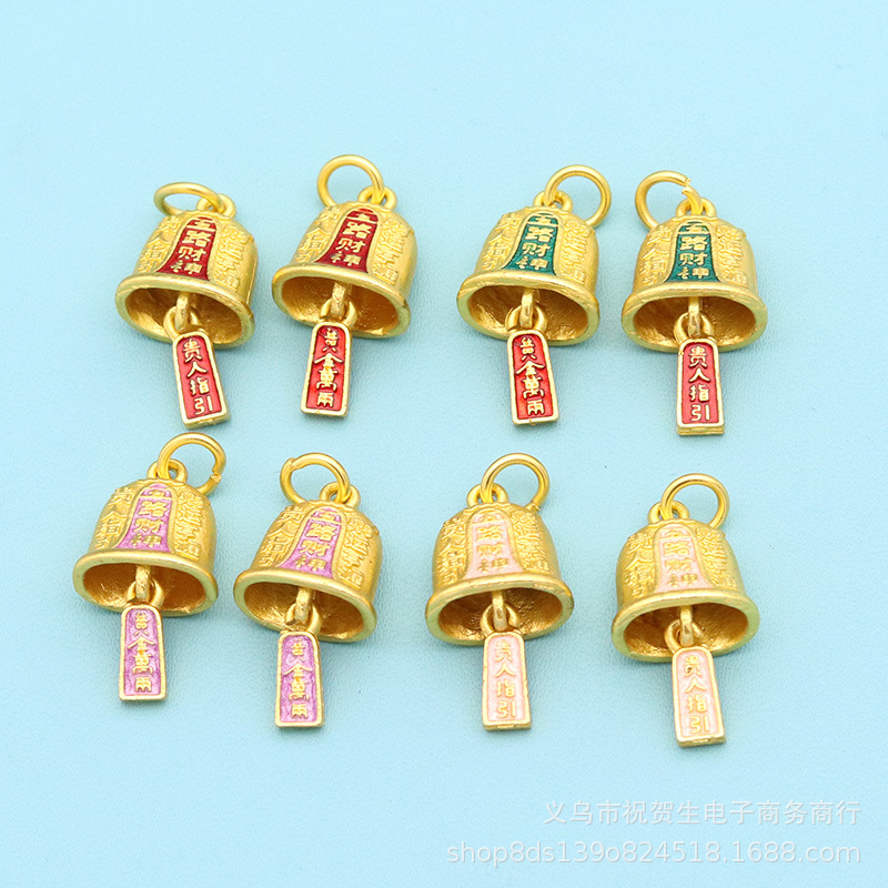 保色珐琅彩五路财神铃铛吊坠挂件手工diy钥匙扣手机挂件编绳配件