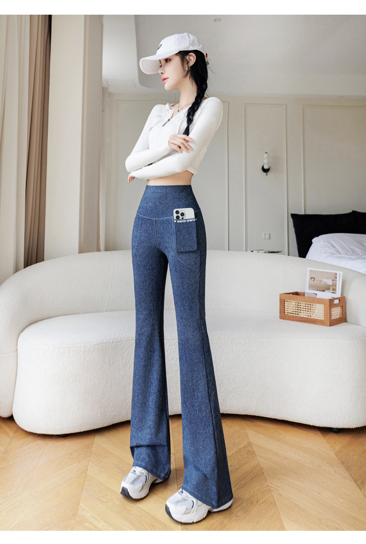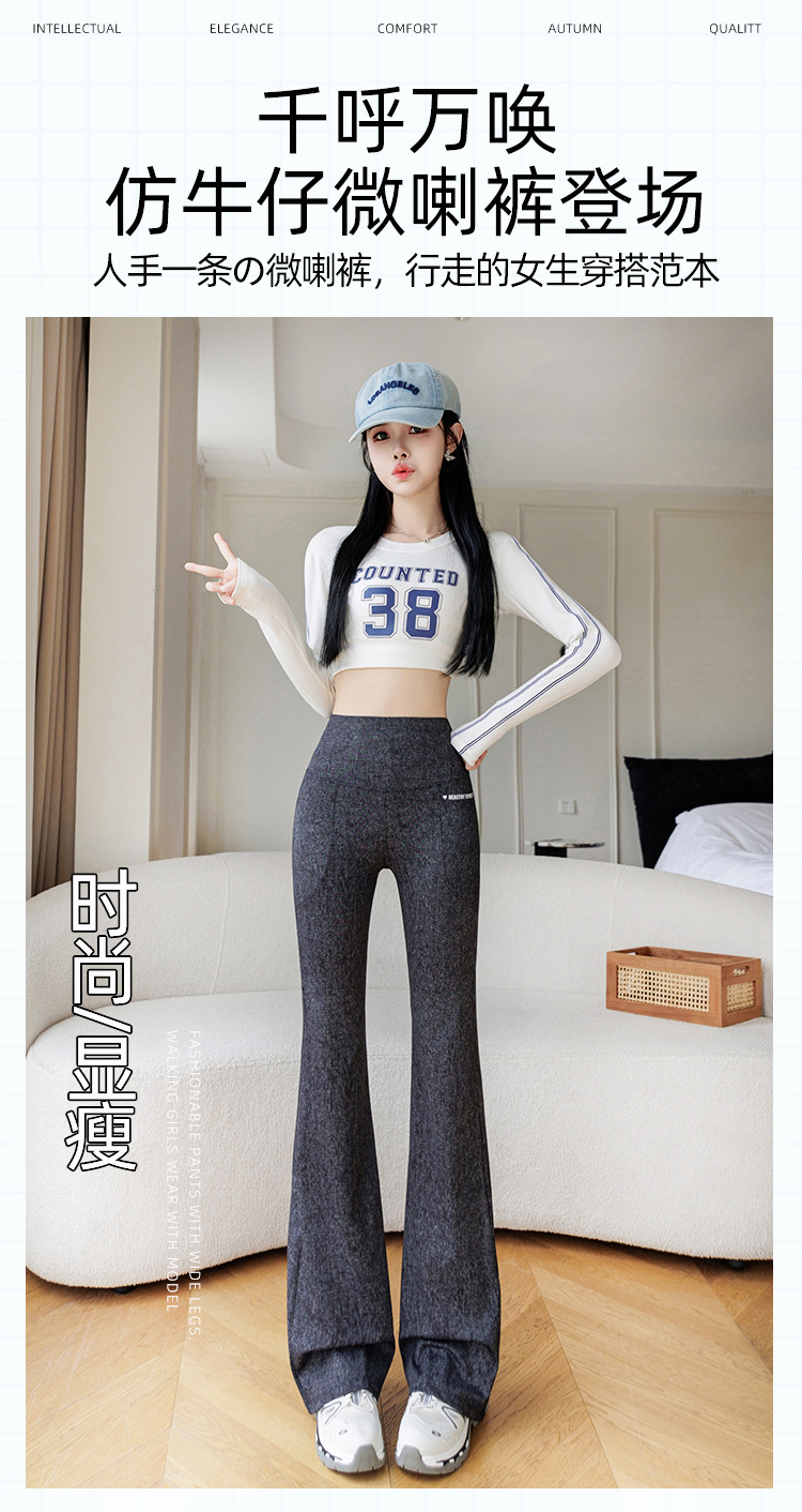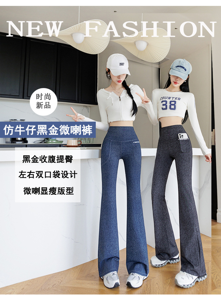 高腰提臀黑金喇叭鲨鱼裤女双口袋瑜伽裤薄款春秋外穿微喇大码女裤