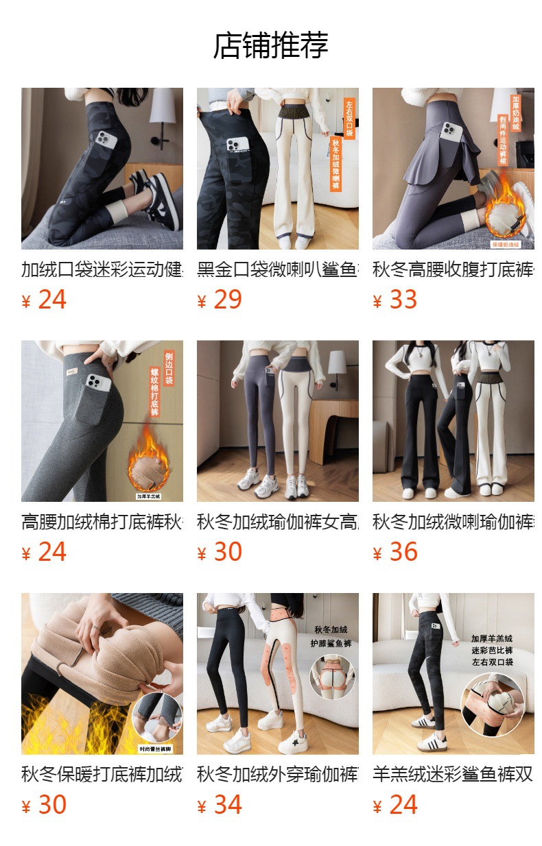加绒口袋迷彩运动健身瑜伽裤高腰双口袋修身鲨鱼裤大码保暖打底裤