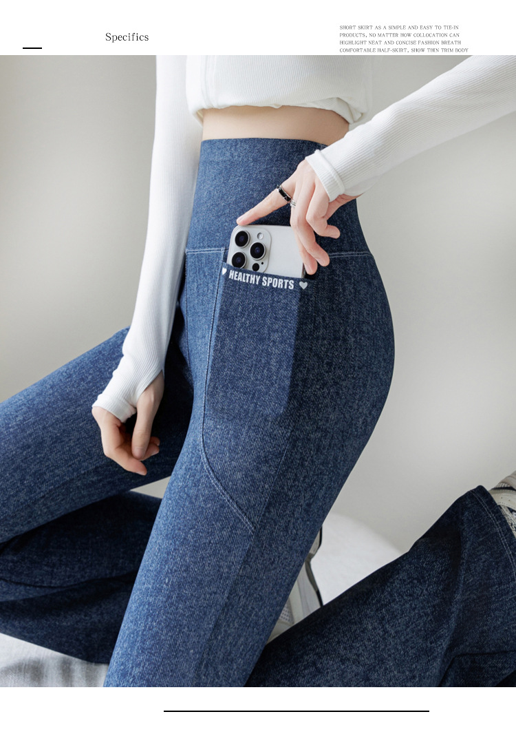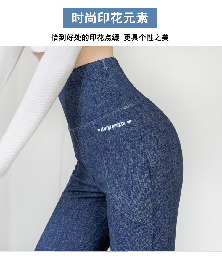 新款仿牛仔鲨鱼裤女外穿收腹提臀口袋九分打底裤薄弹力大码瑜伽裤