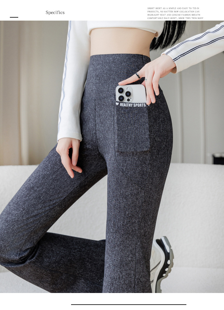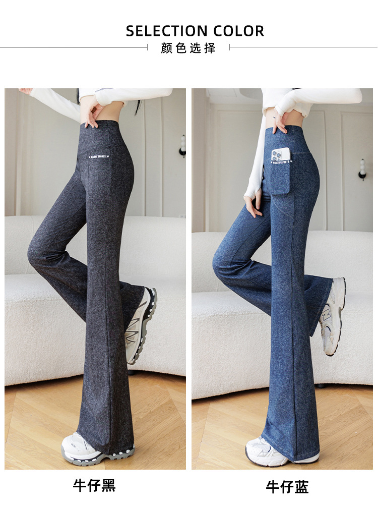 秋冬加绒微喇裤高腰提臀黑金喇叭鲨鱼裤女双口袋瑜伽裤大码女裤